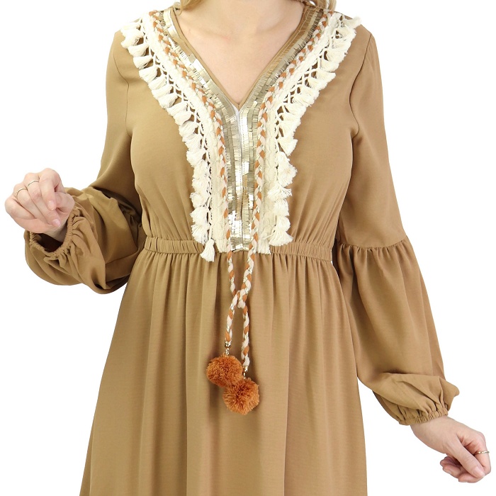 Robe brodée avec ceinture (Vêtement Hijab élégant pour femme voilée) - Couleur kaki - REF. 37082 (26.90 €)