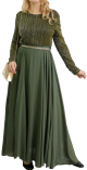 Robe de soirée maxi-longue haut brillant à manches longues - Couleur Vert olive - REF. 30912 (39.00 €)