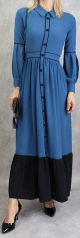 Robe longue évasée bicolore - Couleur bleu acier - REF. 33064 (35.00 €)