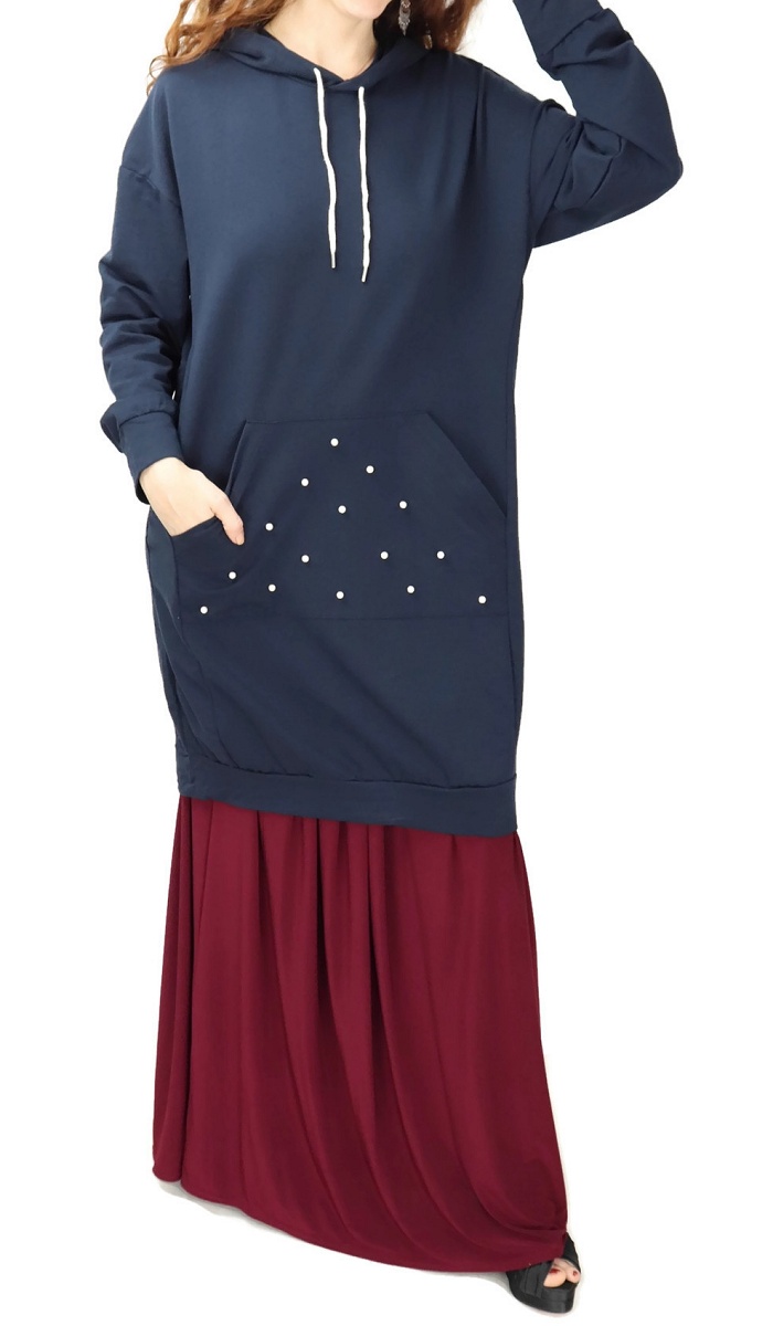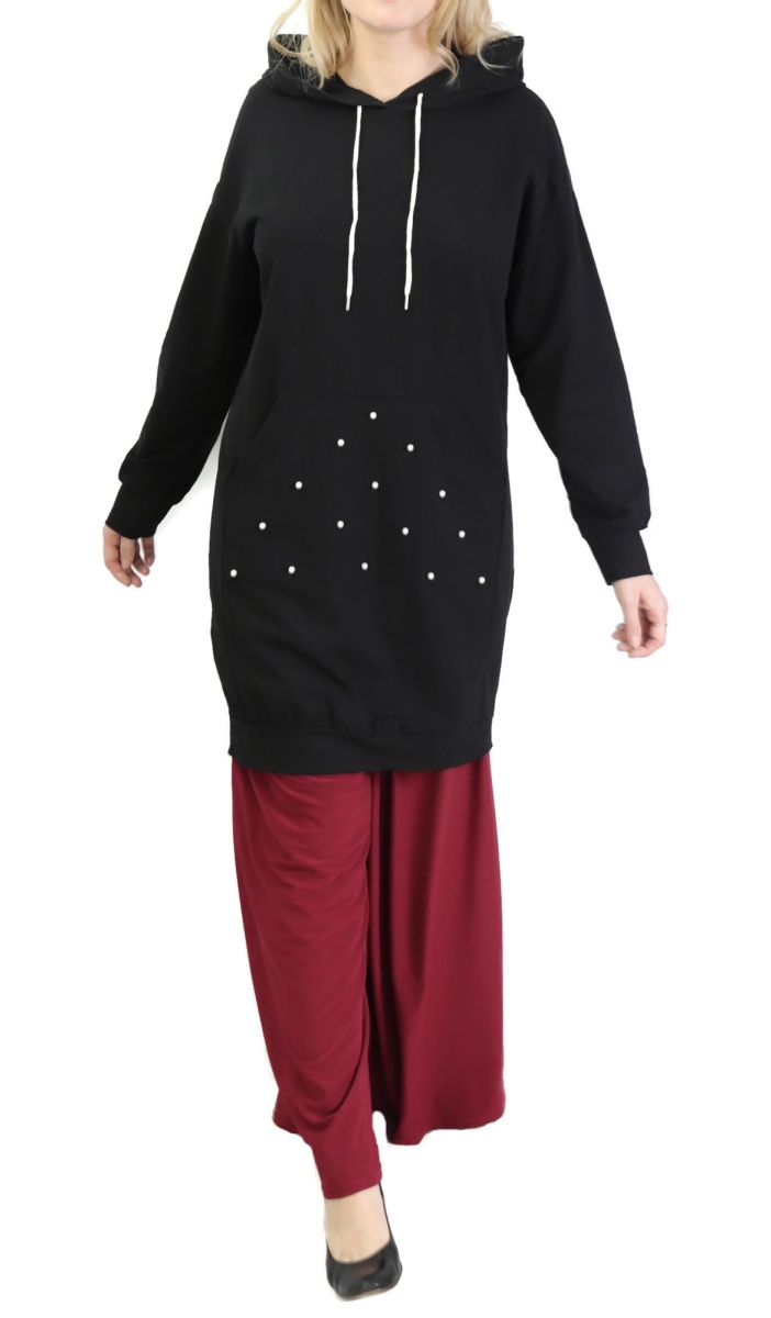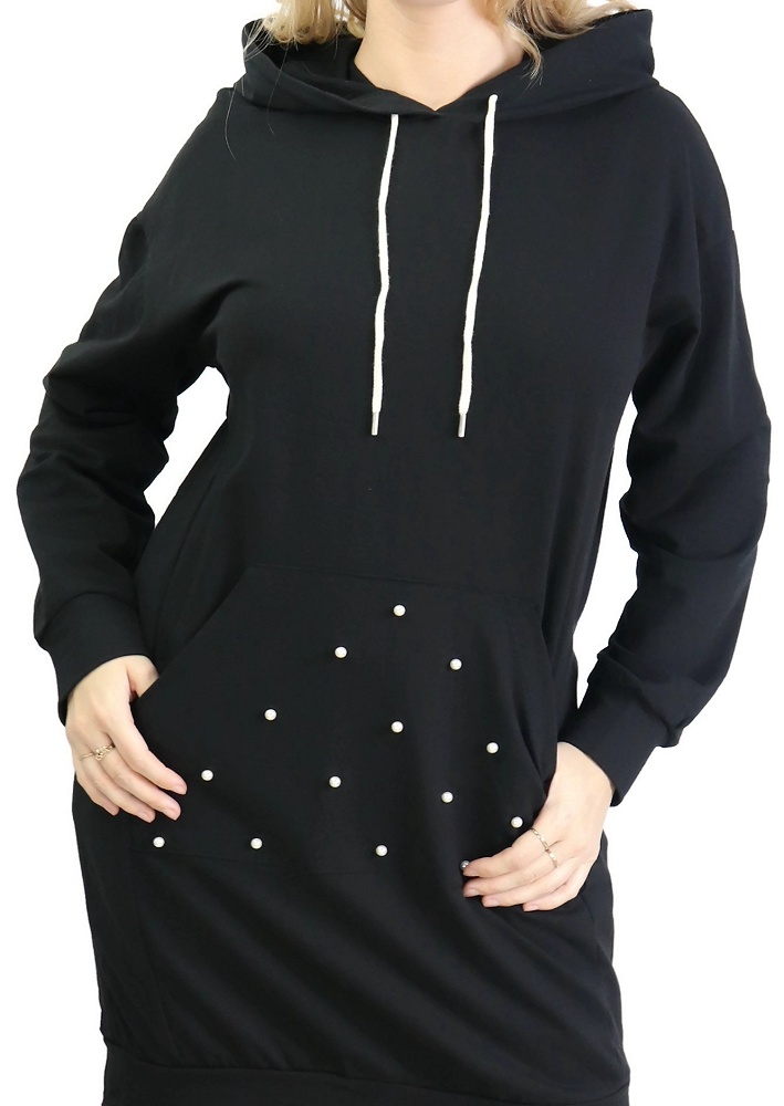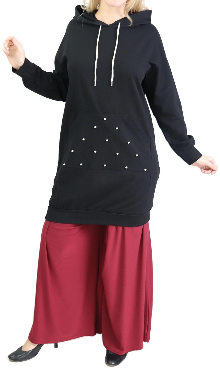 Sweat long à capuche avec lien de serrage et poche kangourou décoré de petites perles nacrées. Parfait pour être en mode Urban Classic.