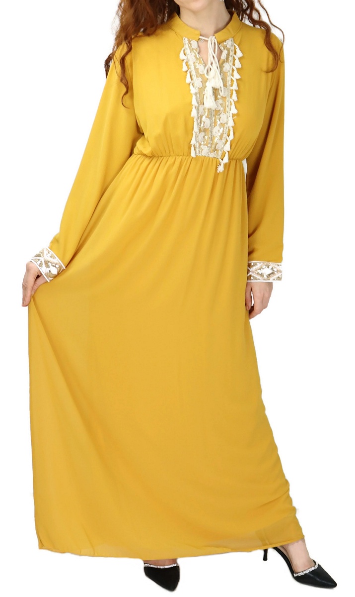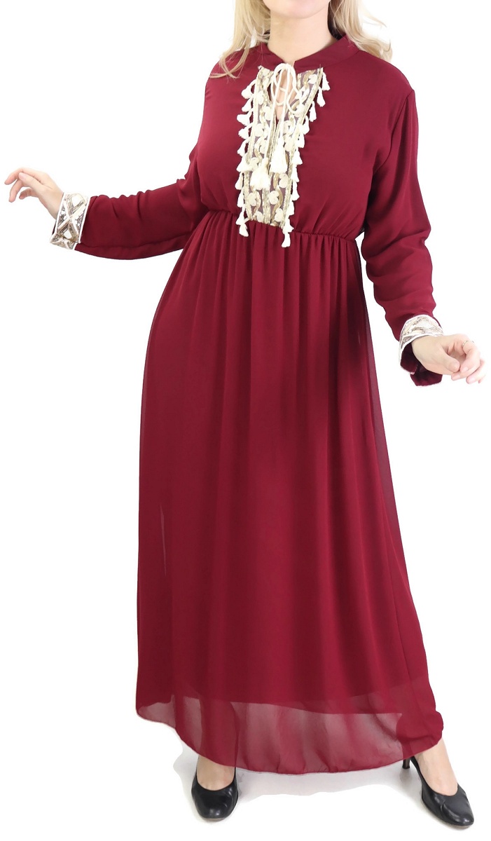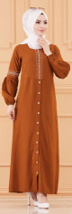 Robe longue brodée pour femme musulmane (Tenue Hijab style habillé) - Couleur tabac - REF. 36597 (35.00 €)