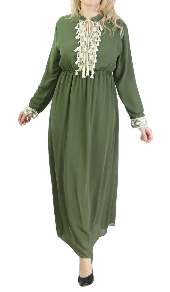 Robe longue brodée ouverture zippée - Couleur kaki - REF. 29541 (28.00 €)