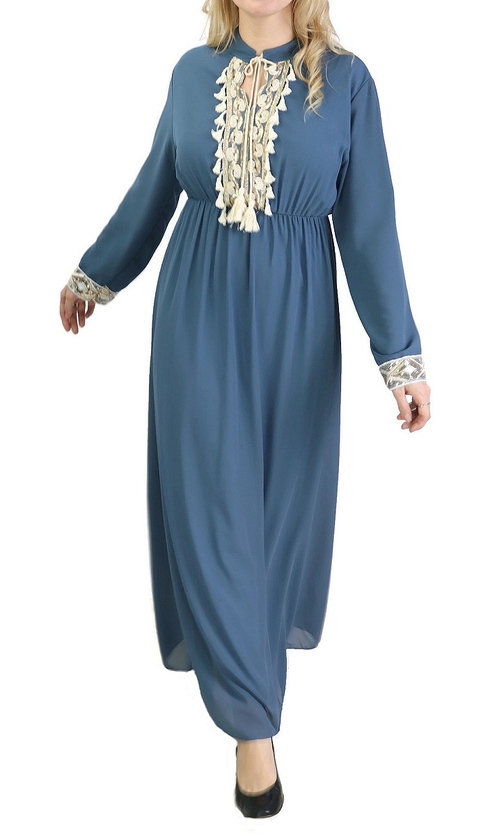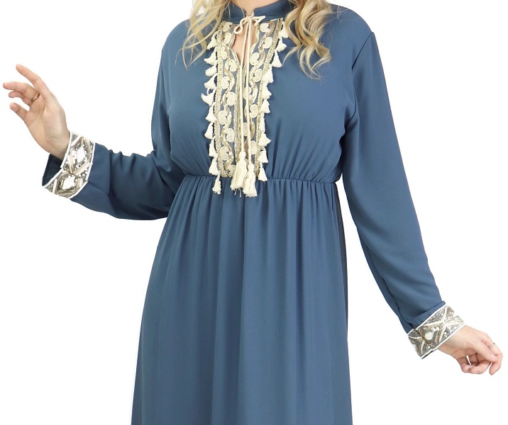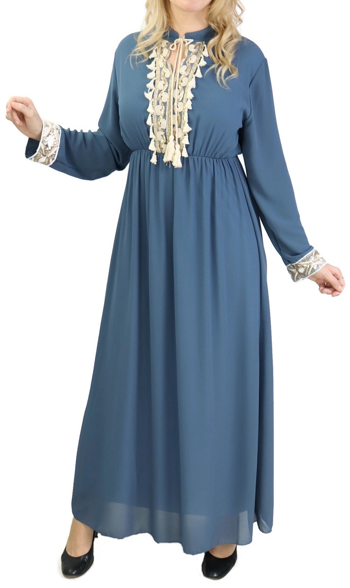 Robe orientale brodée manches longues pour femme - Couleur Bleu - REF. 37035 (29.90 €)