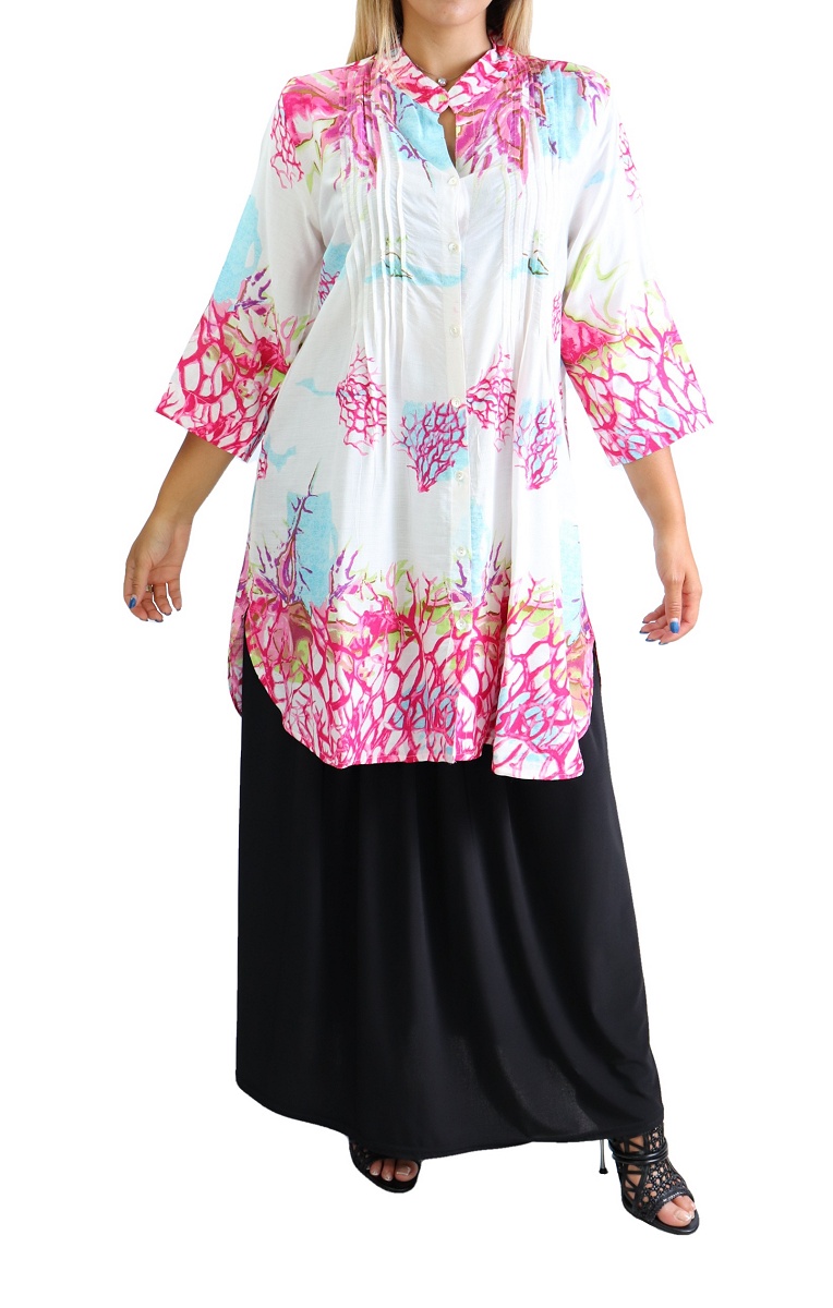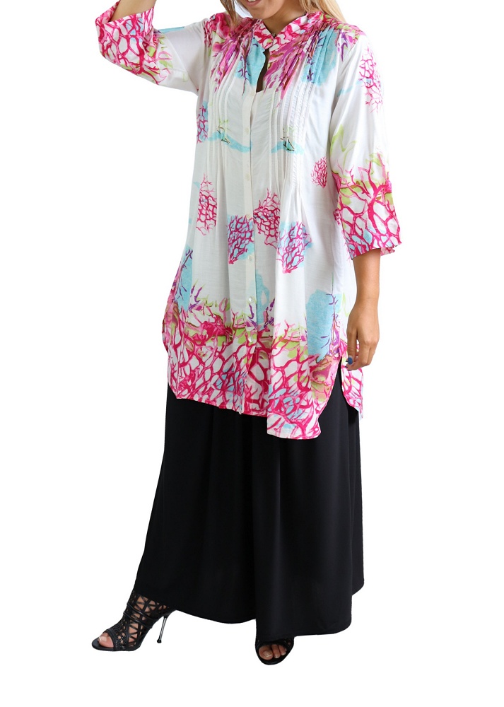 Tunique Chemise large motif fleur avec boutons pour femme Vetement & Accessoire