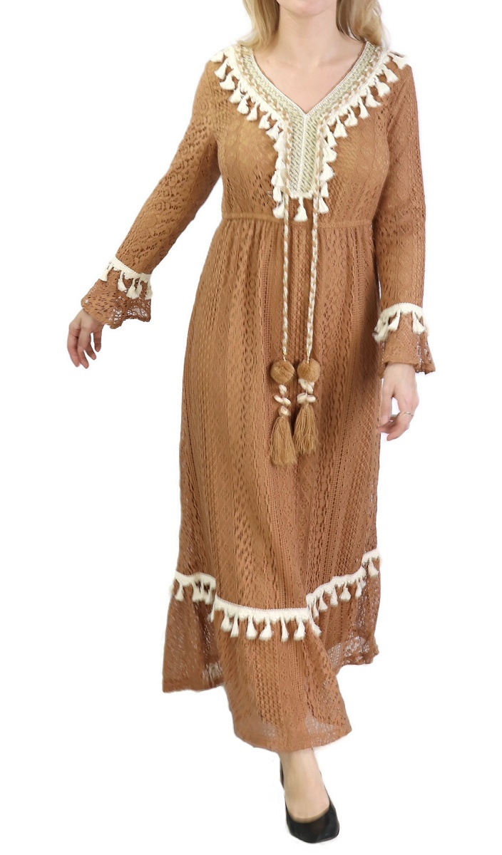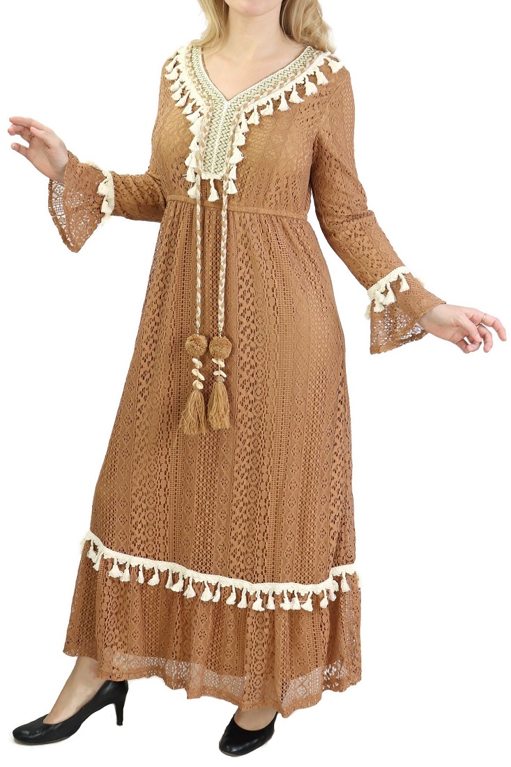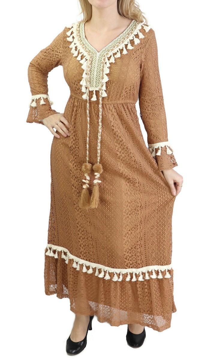 Robe de soirée en dentelles avec pompons - Couleur caramel Vetement & Accessoire