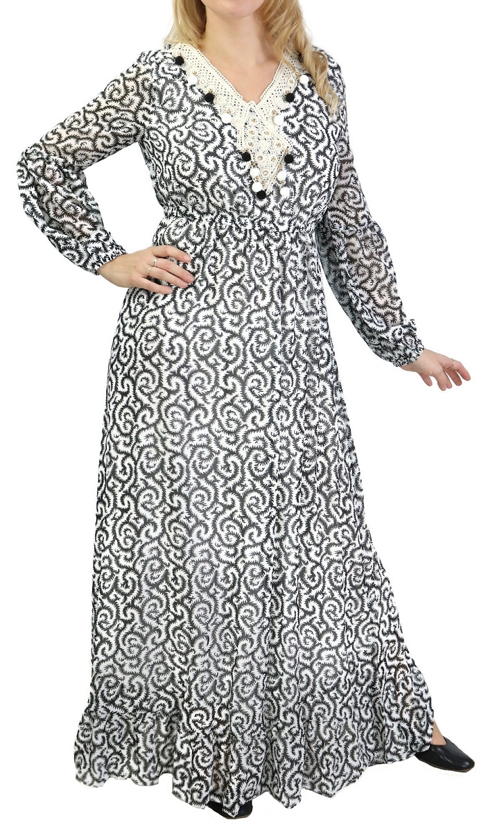 Robe longue maxi fleurie - Couleur Noire à motifs fleuris gris clairs (Toutes saisons) - REF. 28715 (28.00 €)