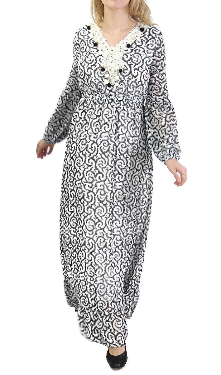 Robe longue noire motifs à pois (Abaya hijab moderne pas cher en ligne) - REF. 33851 (19.90 €)