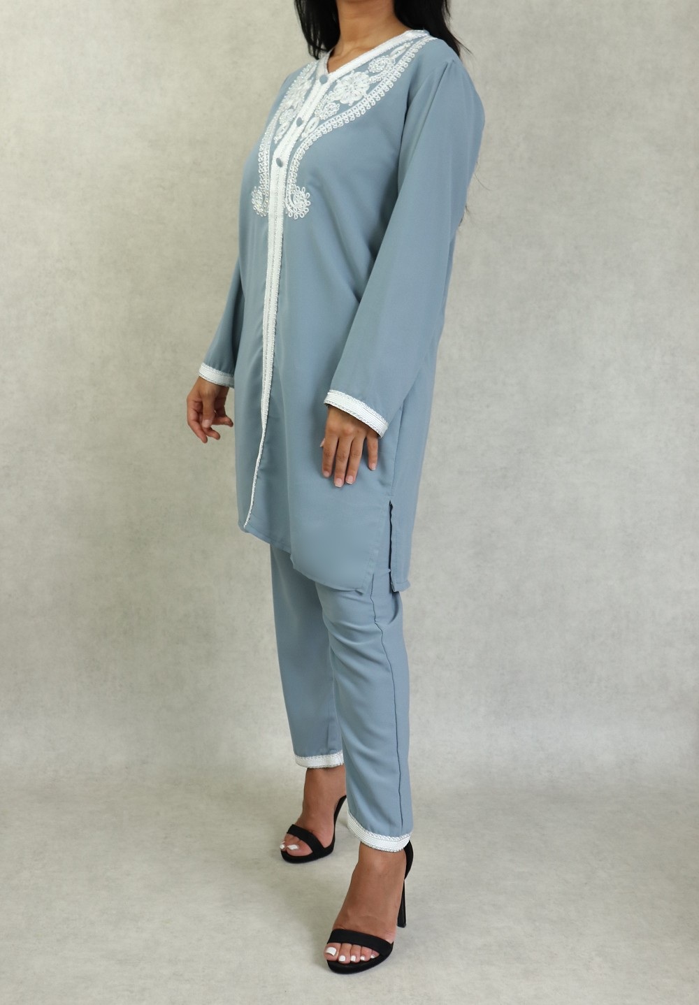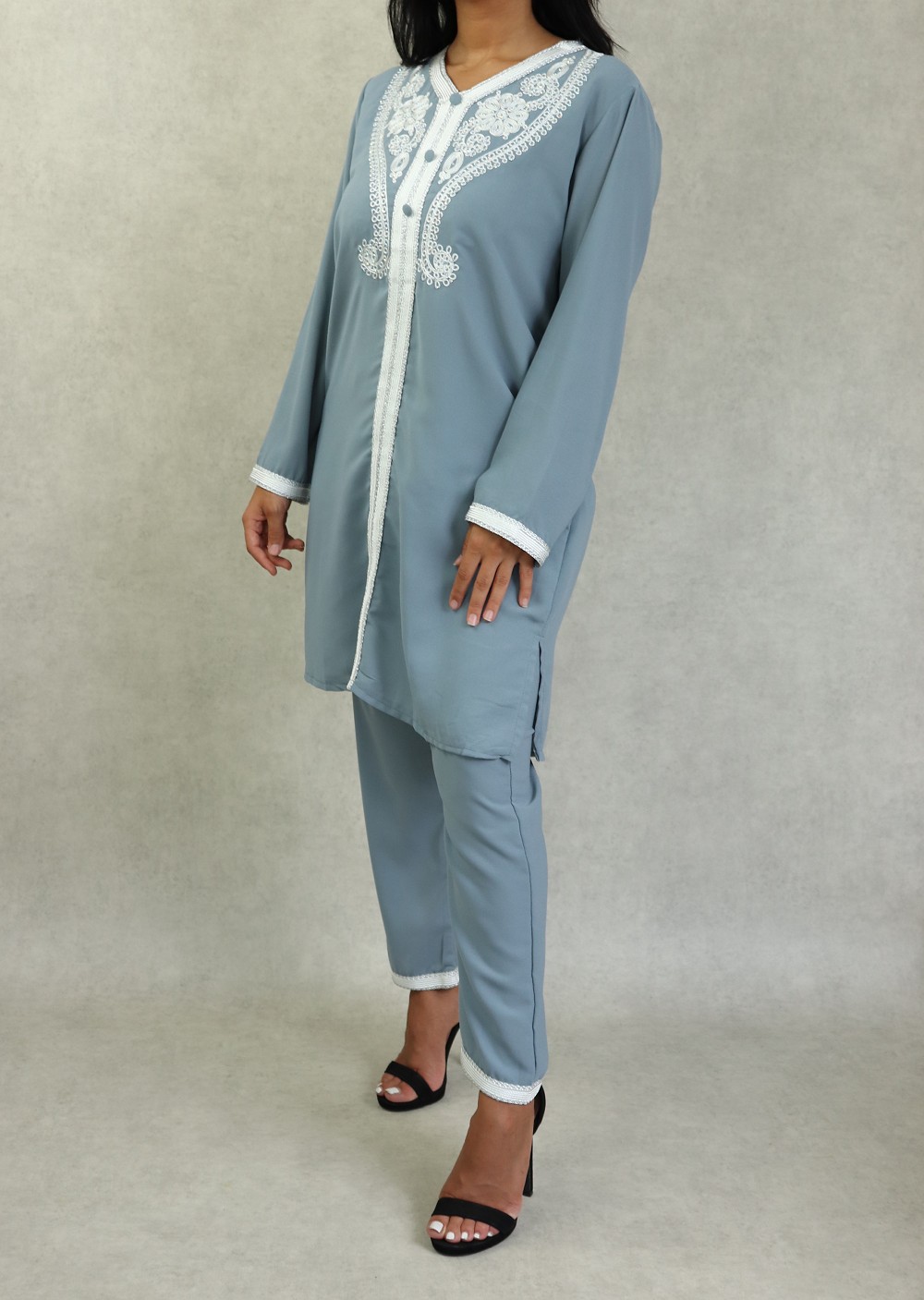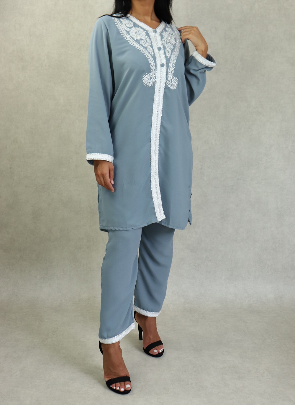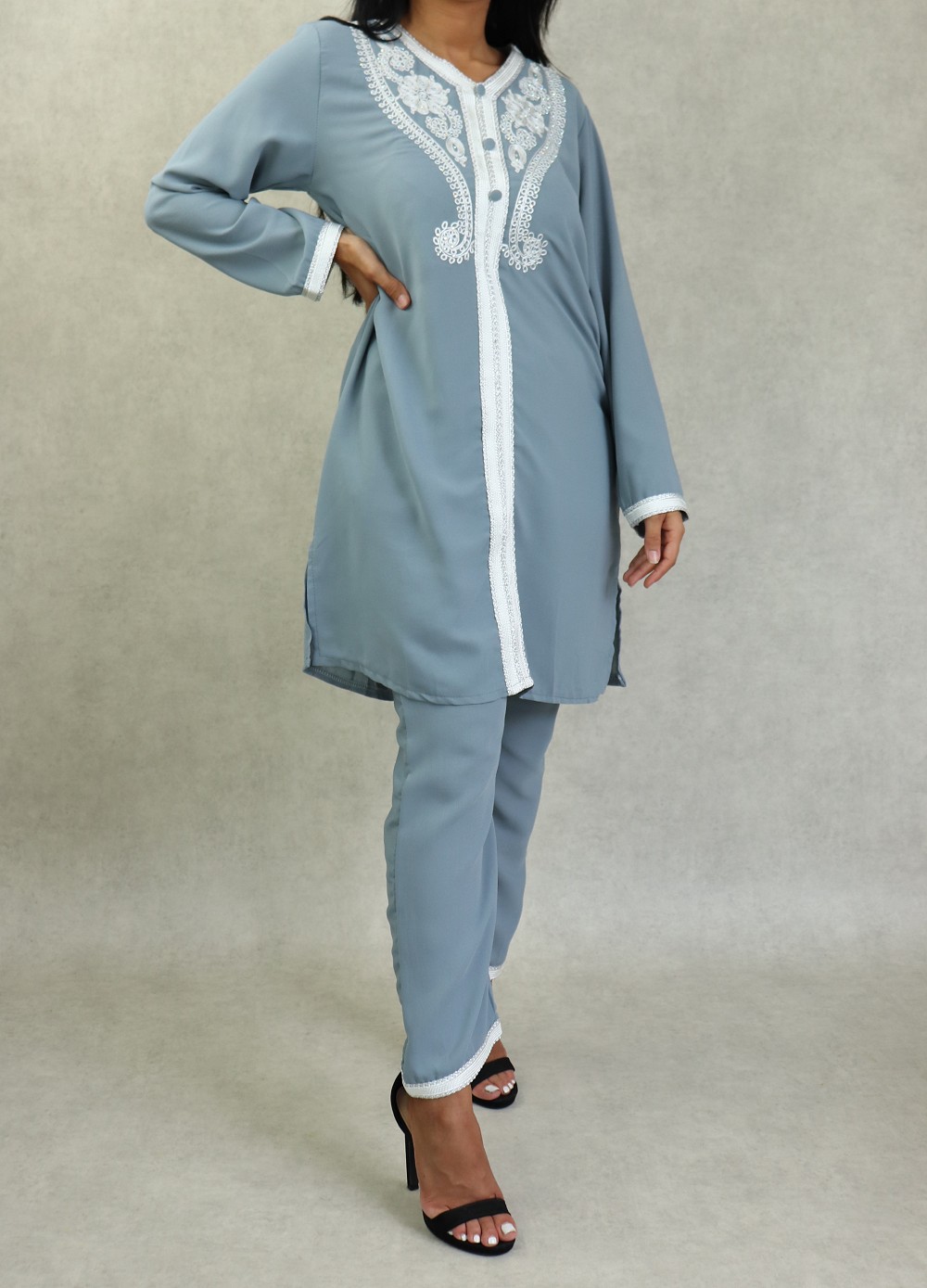 Jabador femme brodé - Ensemble 2 pièces (tunique et pantalon) - Couleur Gris clair Vetement & Accessoire