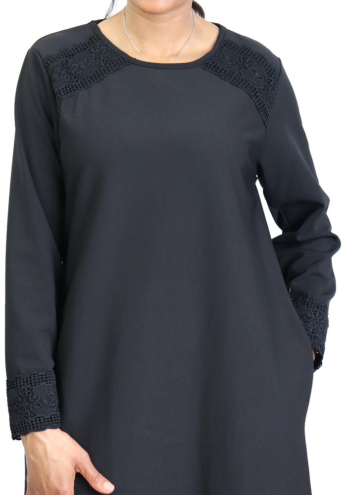 Robe casual longue ample et évasée (Vêtement hijab moderne) - Couleur noir - REF. 37139 (35.00 €)