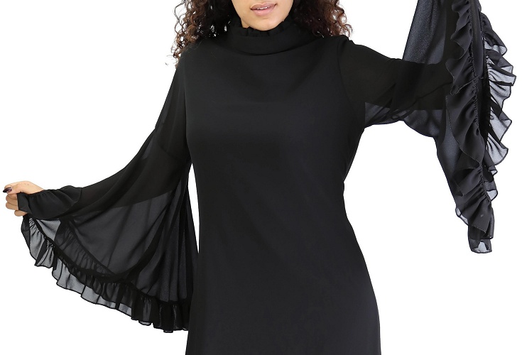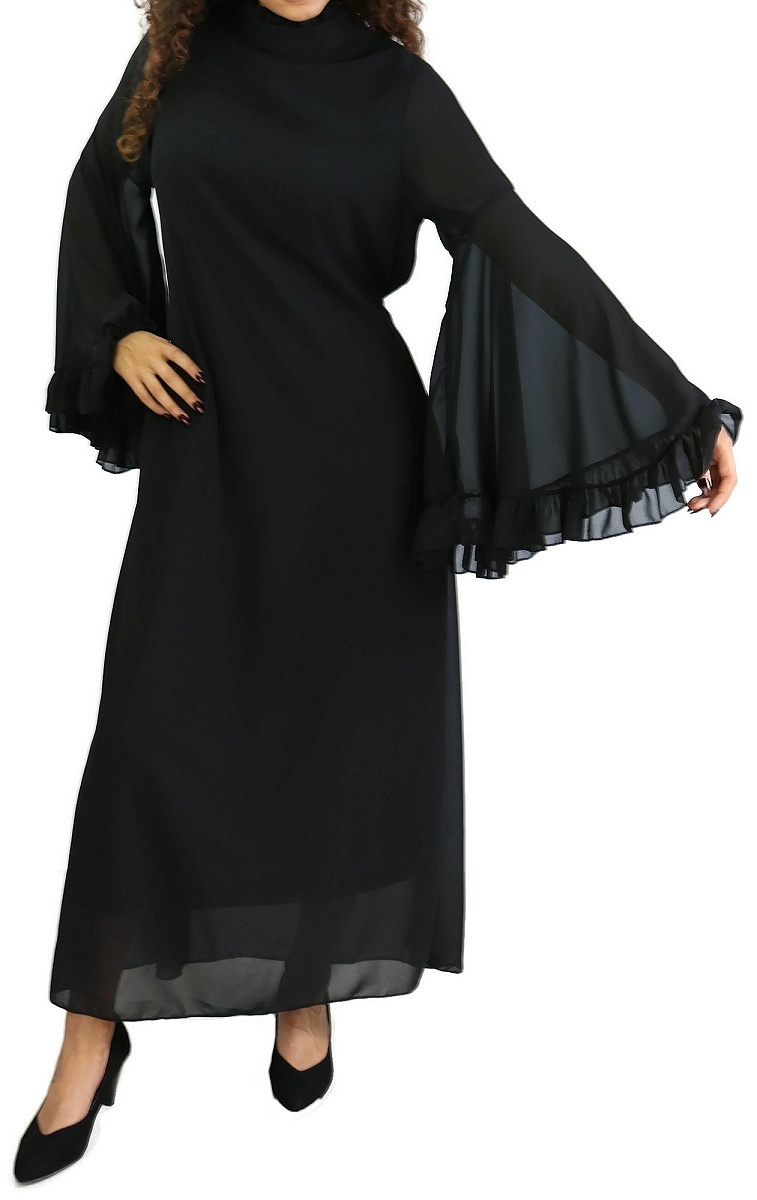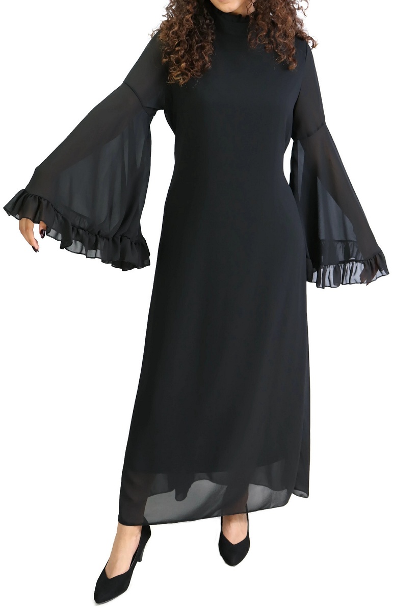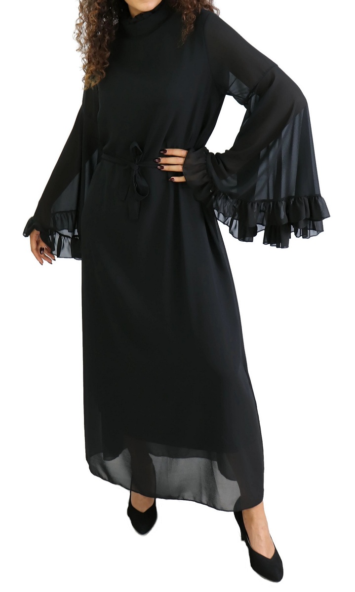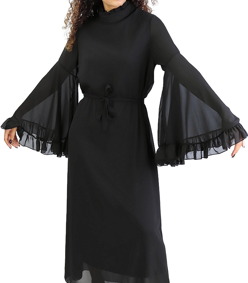Optez pour cette robe style romantique, ultra féminine et pile dans la tendance. Col officier manches évasées avec une ceinture assortie. Tissu de type mousseline. Entièrement doublée.