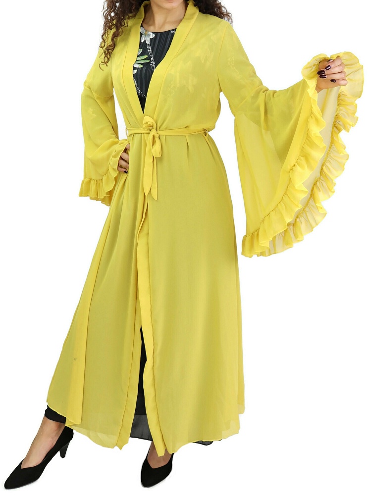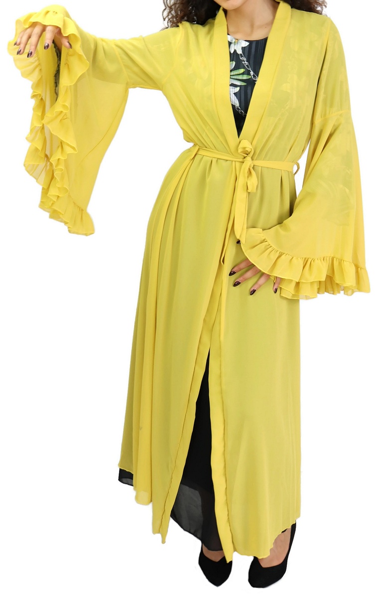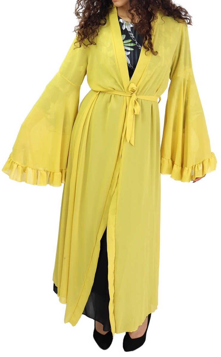 Kimono avec manches cloche et ceinture couleur Jaune Vetement & Accessoire