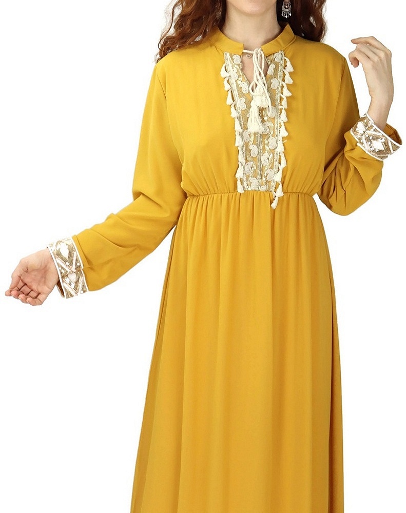 Robe volantée à capuche imprimée à pois avec volant (Vetement hijab femme - Grande taille) - Couleur moutarde - REF. 32233 (25.00 €)