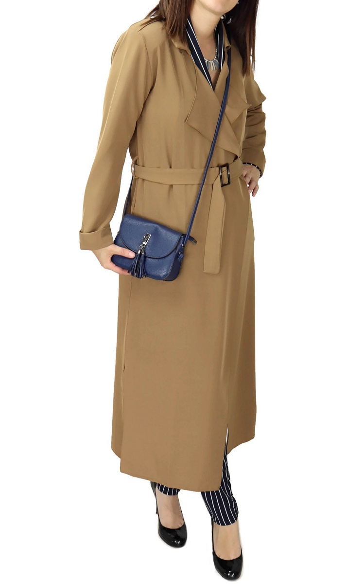 Trench long, coupe droit classique ceinturée à la taille sous passants, s'adapte à tous les styles et donne l'allure à n'importe quelle tenue. Incontournable à la mi-saison.