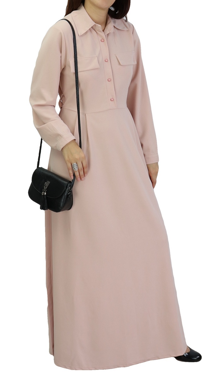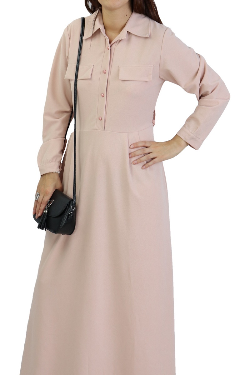 Robe longue look décontracté pour femme musulmane (Vetement hijeb pas cher) - Couleur rose clair - REF. 36949 (19.90 €) - En Promotion à 16.90 €