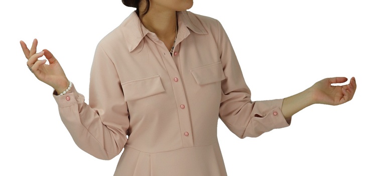Robe Longue boutonnée avec Col Chemisier et ceinture de couleur rose pale  Vetement & Accessoire