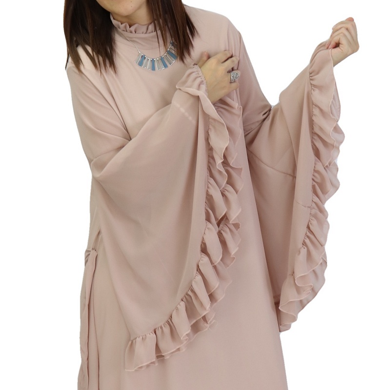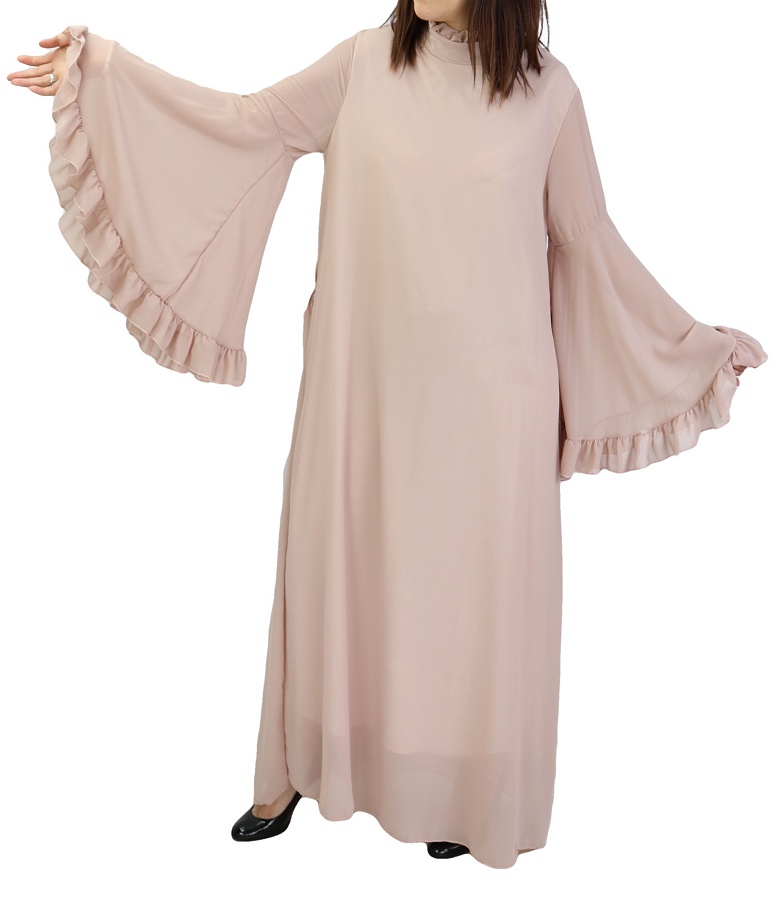 Optez pour cette robe style romantique, ultra féminine et pile dans la tendance. Col officier manches évasées avec une ceinture assortie. Tissu de type mousseline. Entièrement doublée (sauf les manches).