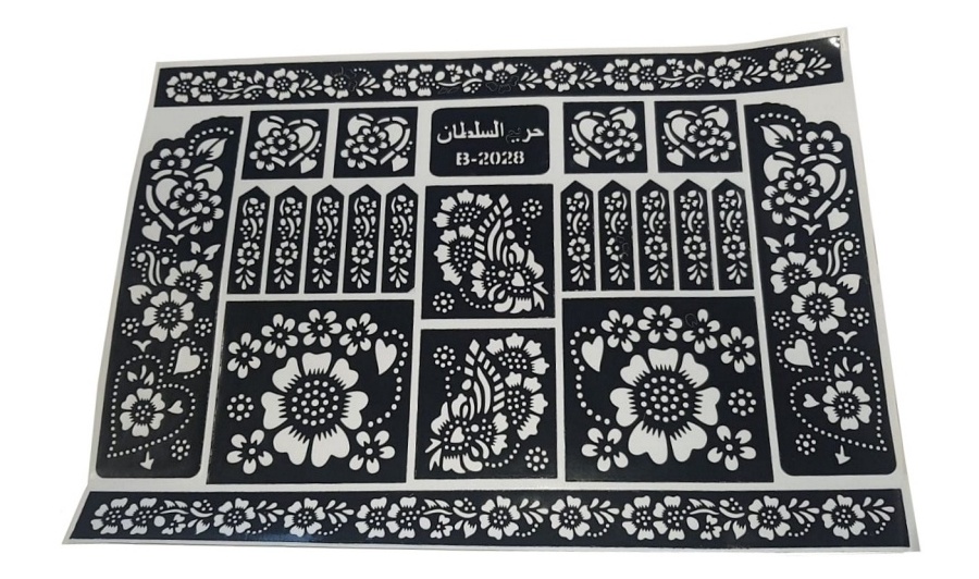 Grande plaque de motifs de tatouages au henné, idéal pour vos parfaire vos tatouages au henné pour vos mariages et fêtes.