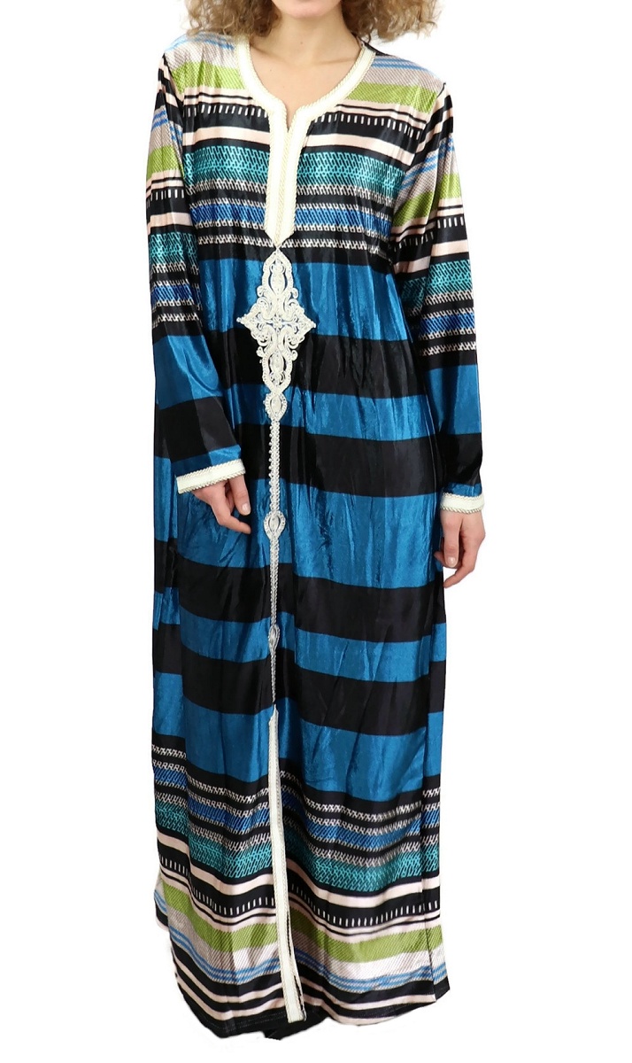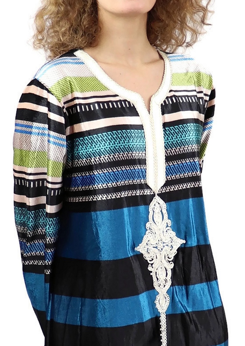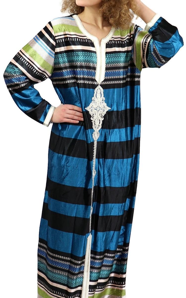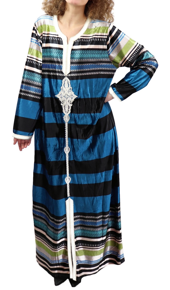 Gandoura marocaine Bleu vert avec strass argentée - REF. 20138 (25.00 €)