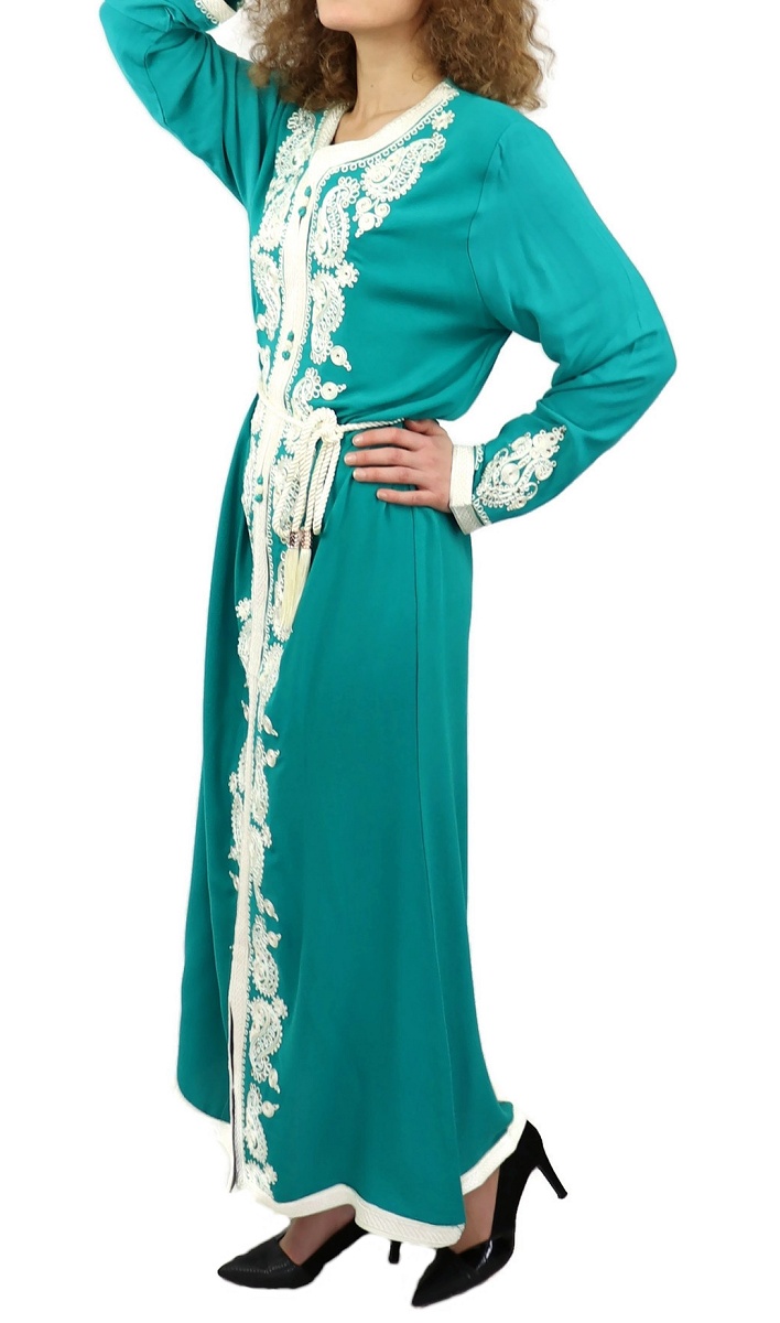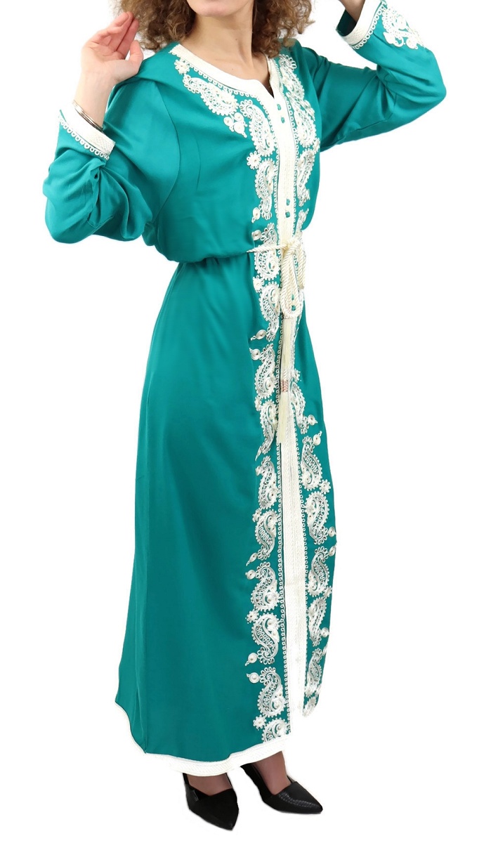Très belle robe marocaine réalisée dans un tissu épais (non transparent), fluide et doux au toucher (coton), est fournie avec une ceinture. Le double avantage de ce modèle est d'être confortable et élégant à la fois.
