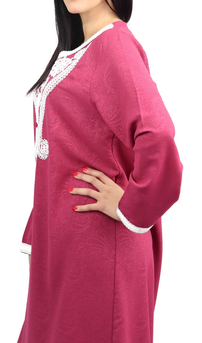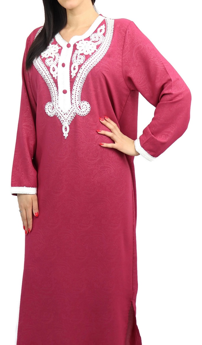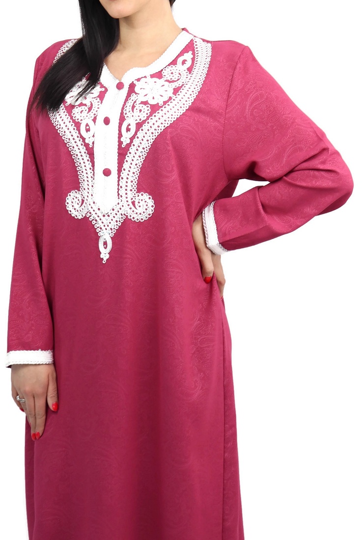 Robe longue à capuche effet plissée pour femme musulmane - Couleur bordeaux et blanc - REF. 33984 (28.00 €)