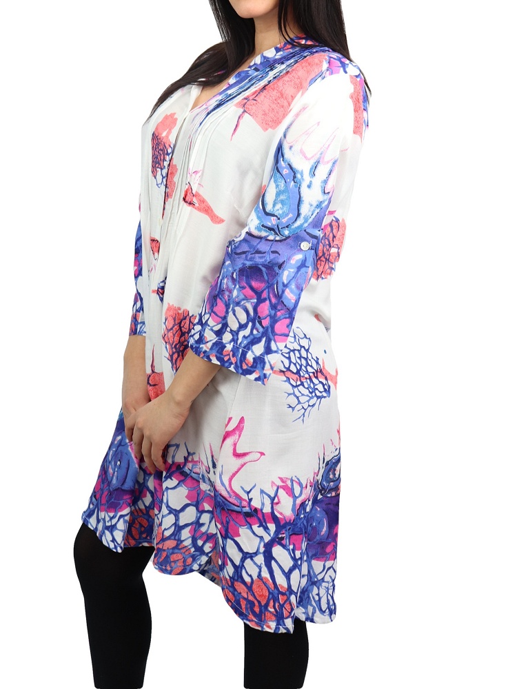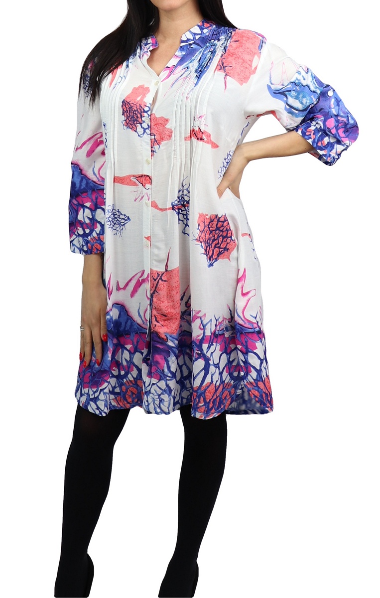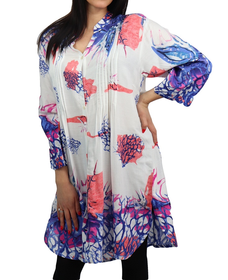 Parfaite à porter pour l'été avec son encolure dégagée, cette tunique longue ultra légère de matière de coton et douce. Ce modèle a une coupe droite avec des pinces et tombe parfaitement.
