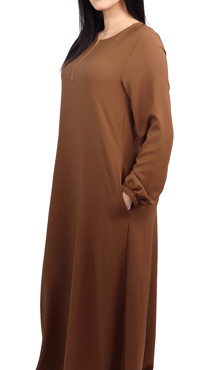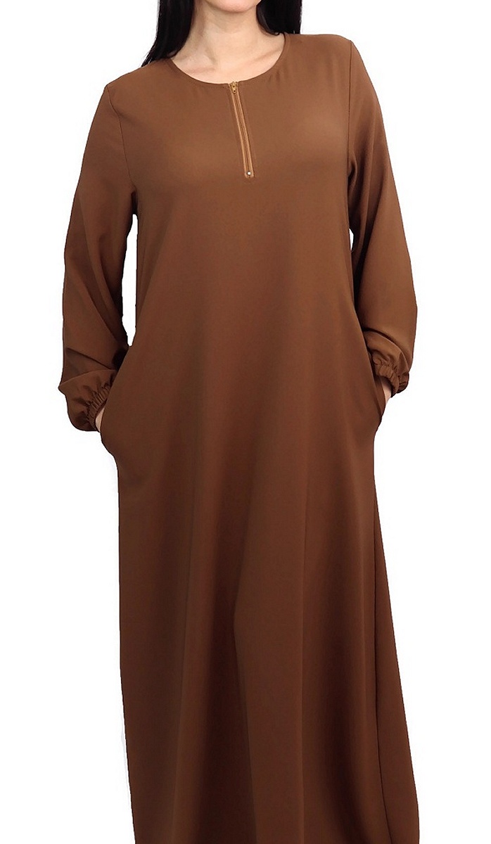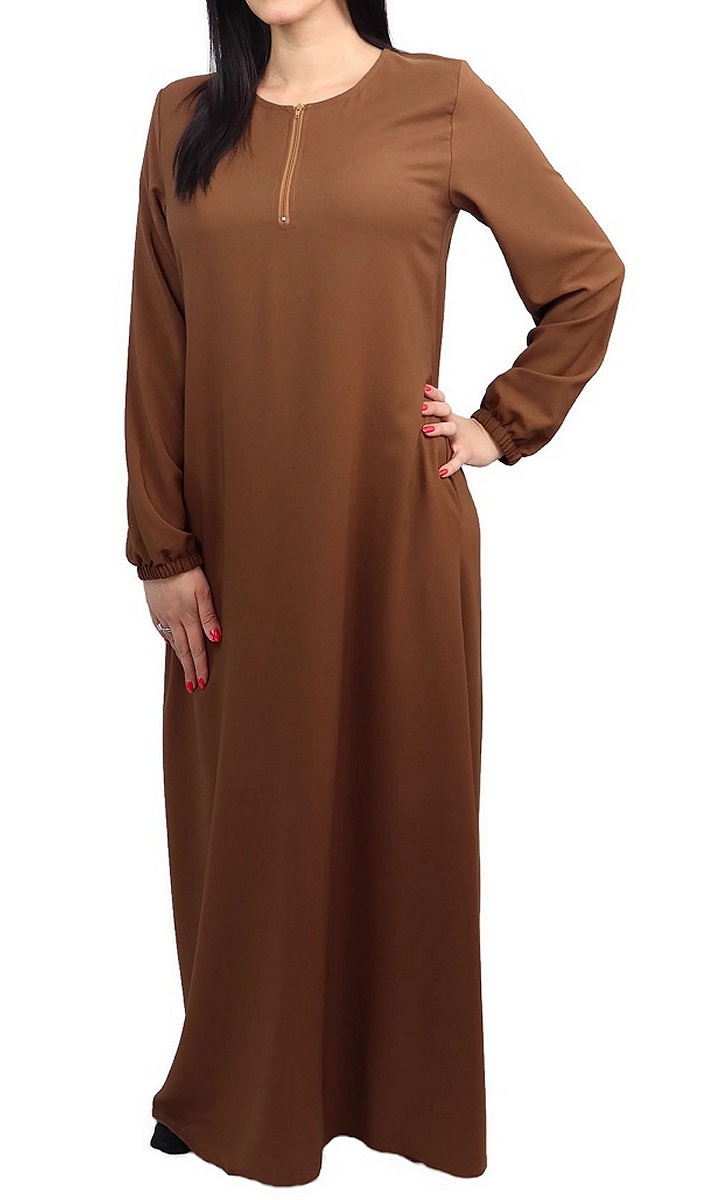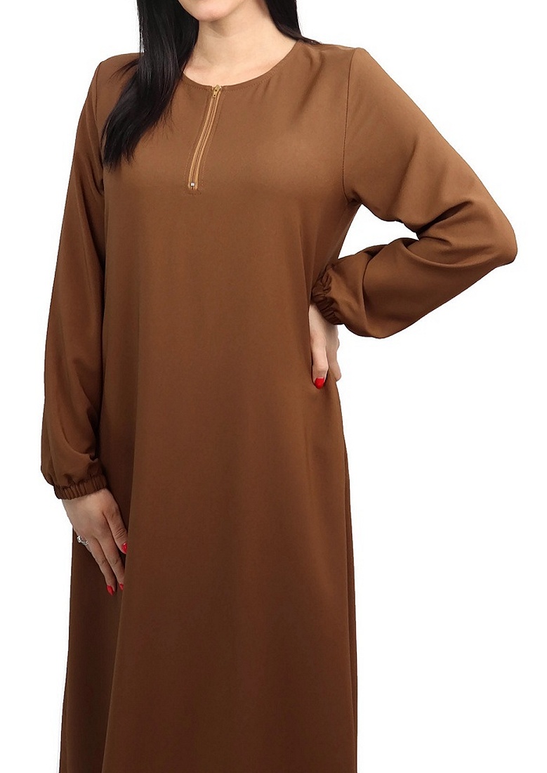 Robe longue simple manches longues avec ouverture zip pour femme - Couleur Marron Vetement & Accessoire
