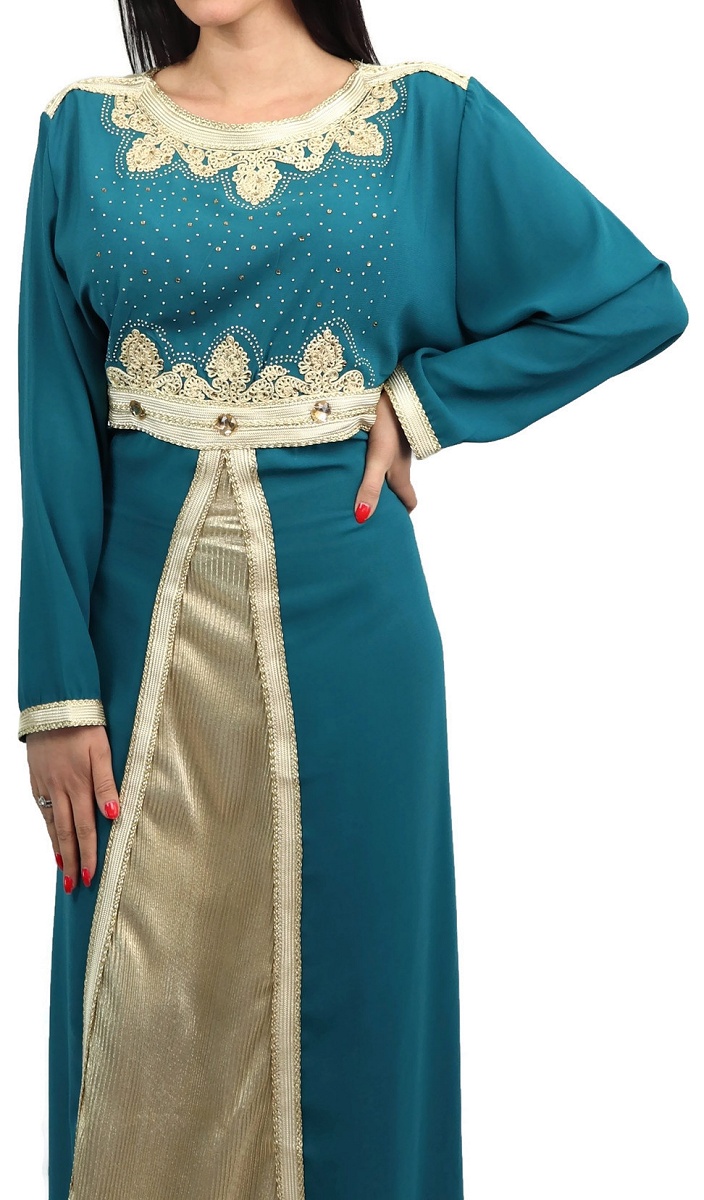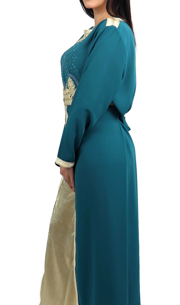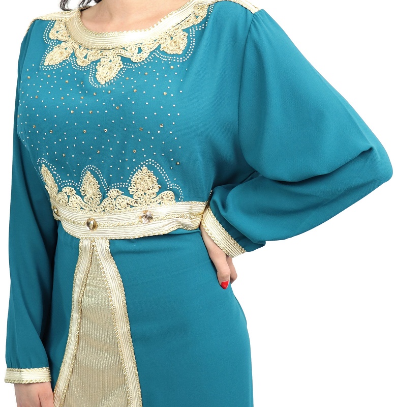 Robe longue, finition broderies au col, à la taille et aux poignets, liens de serrage à la taille. Ce modèle est tout à fait adapté pour les cérémonies et occasions. Sobre et élégant, il ne vous reste que les accessoires à trouver.