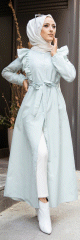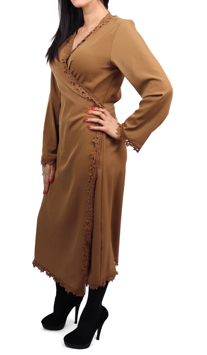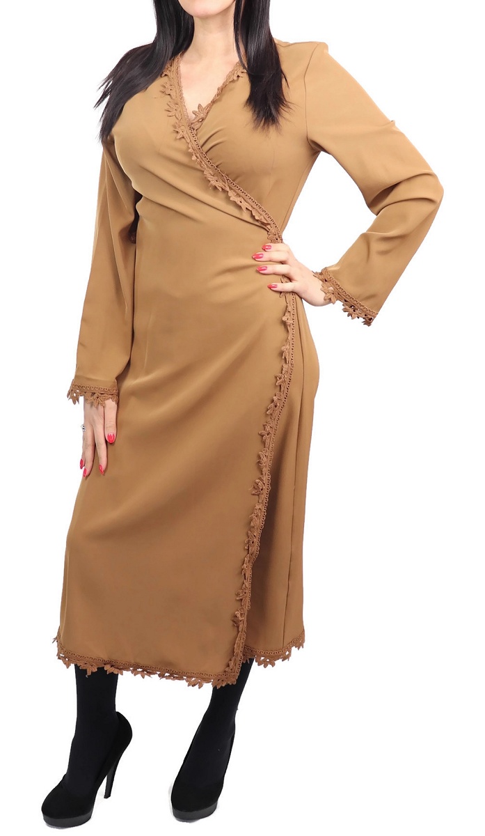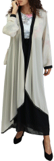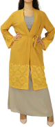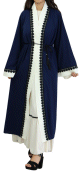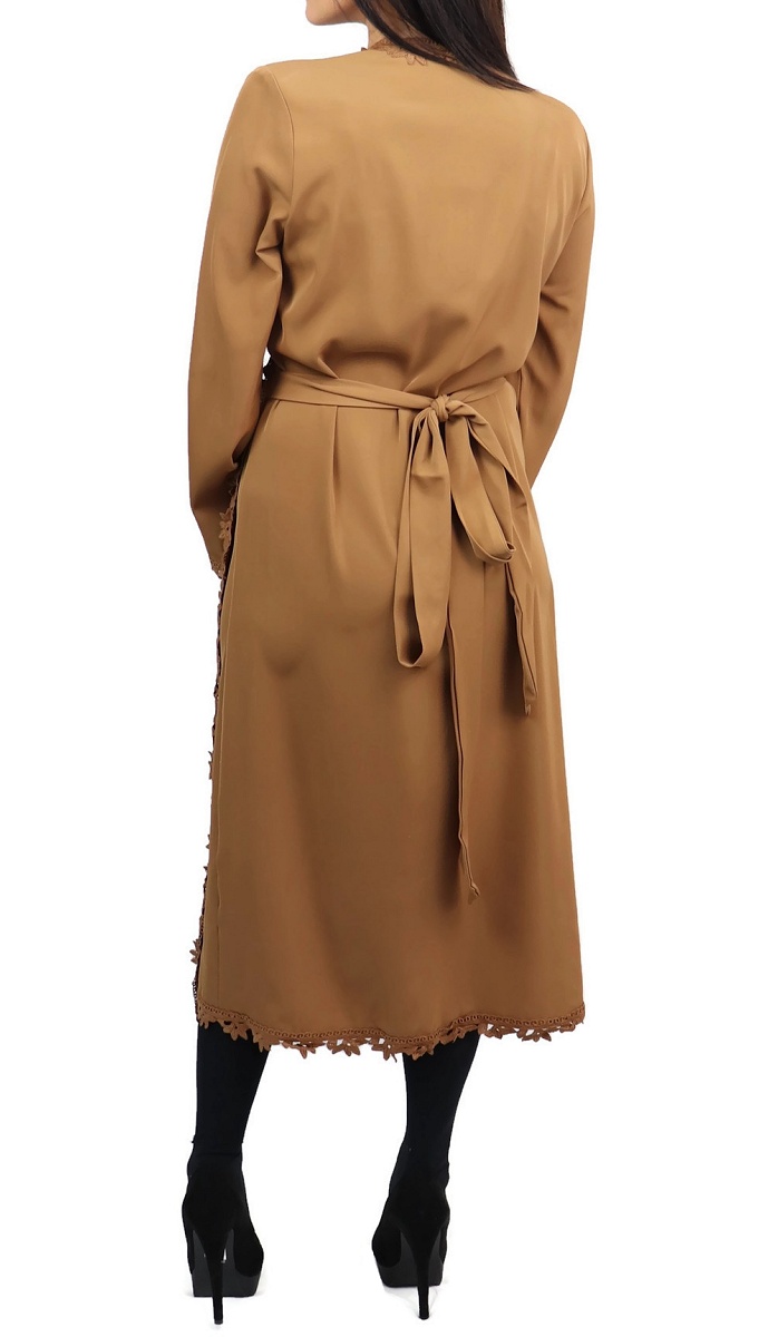 Kimono mi long, manches finition broderies sur les poignets ainsi que sur la longueur, ceinture intégrée, matière fluide, fermeture cache-cœur. Ce modèle s'adapte à toutes vos tenues et les complète à merveille.