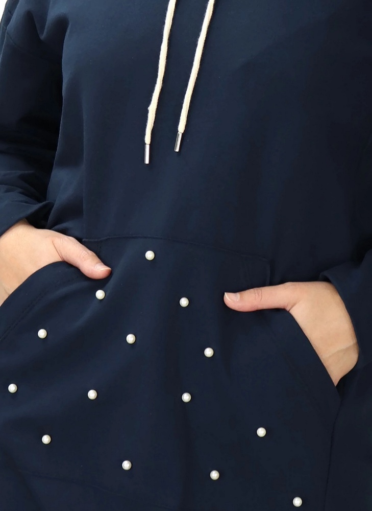 Tunique type sweat-shirt à capuche (Vêtement moderne et sport pour hidjab) - Couleur bleu marine - REF. 38289 (22.00 €)