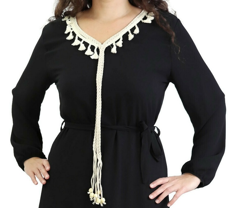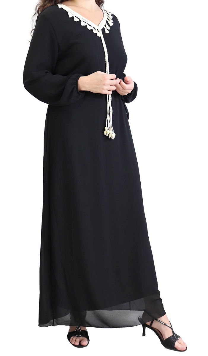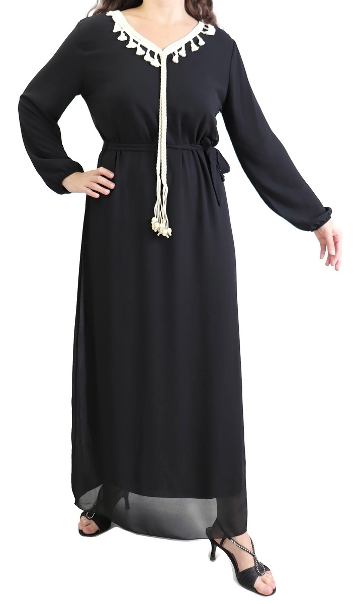 Robe longue style moderne avec capuche (Vetement hijab pour musulmane) - Couleur noir - REF. 35373 (27.00 €) - En Promotion à 19.00 €