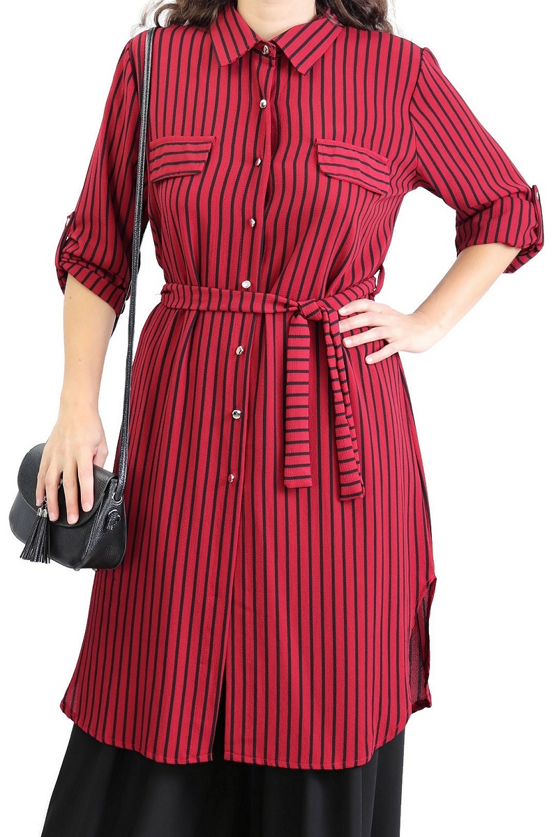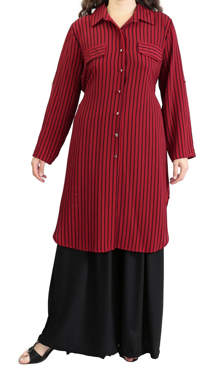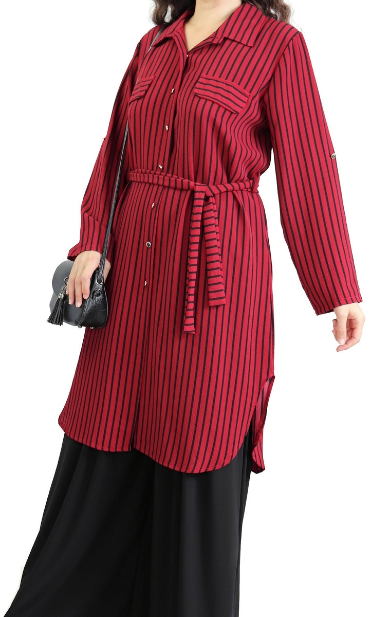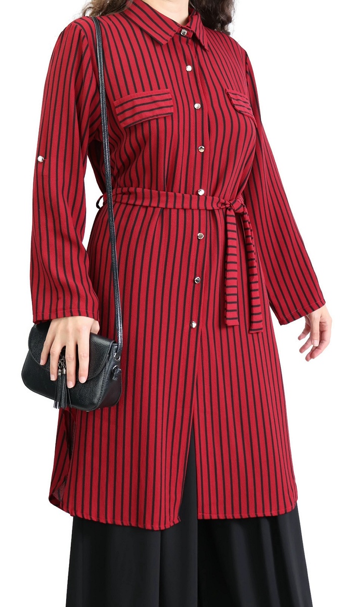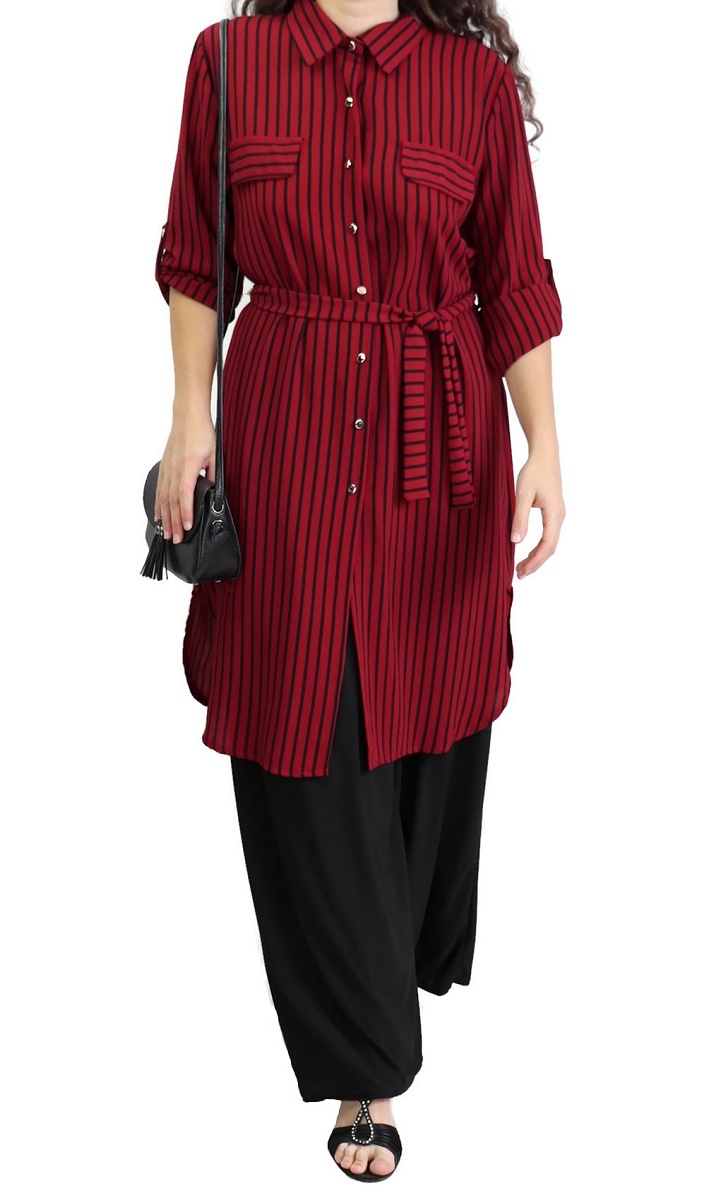 Chemise longue de couleur Bordeaux à rayures noires Vetement & Accessoire