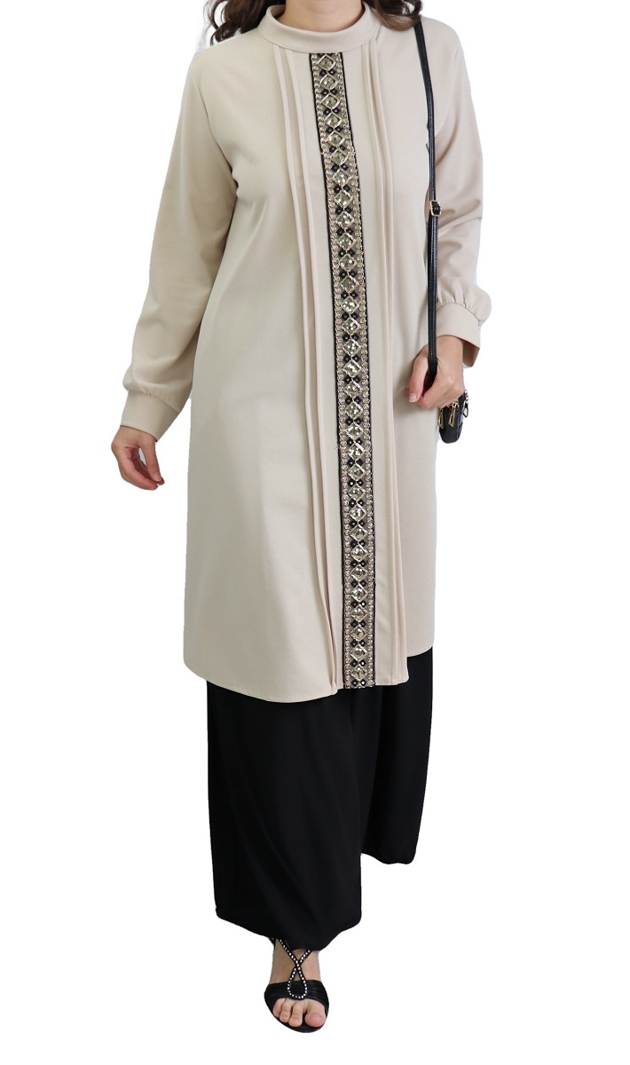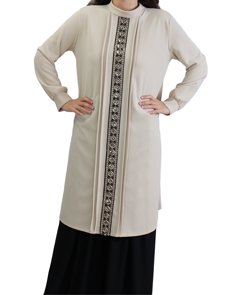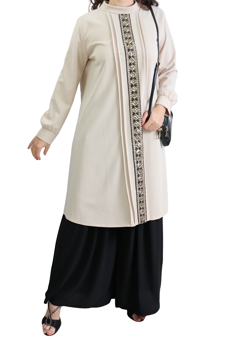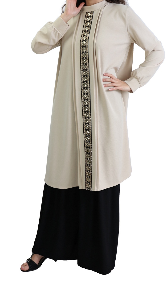 Tunique longue avec dorures (Vêtement à la mode pour femme voilée) - Couleur moutarde - REF. 36455 (24.90 €)