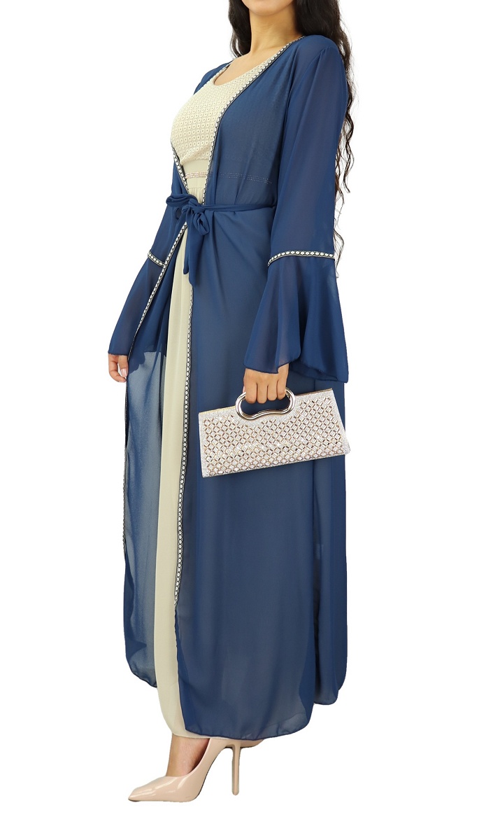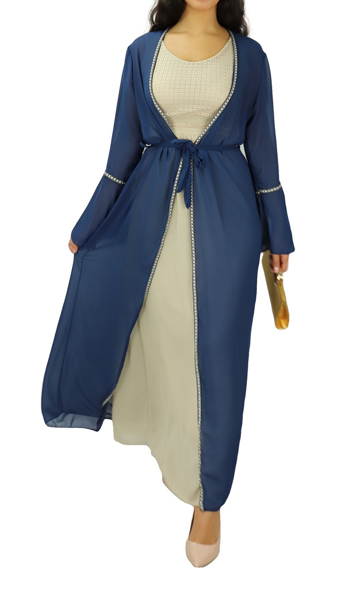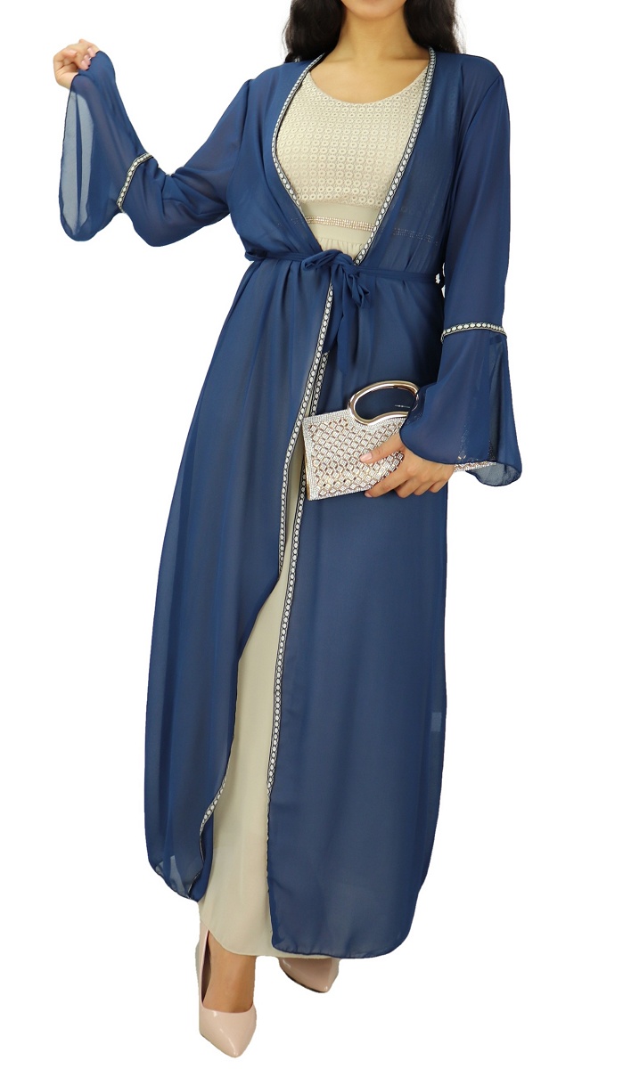 Trench-Coat Long pour femme (Boutique en ligne de Mode islamique Automne Hiver) - Couleur Bleu indigo - REF. 30821 (29.90 €)
