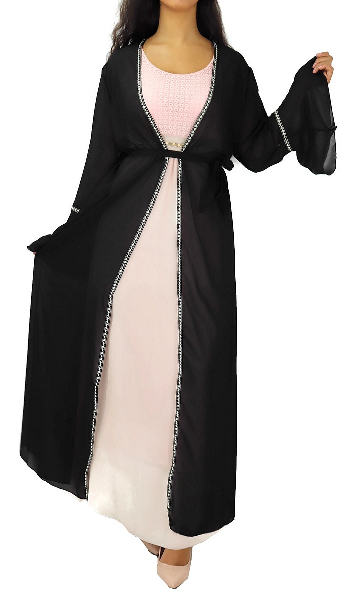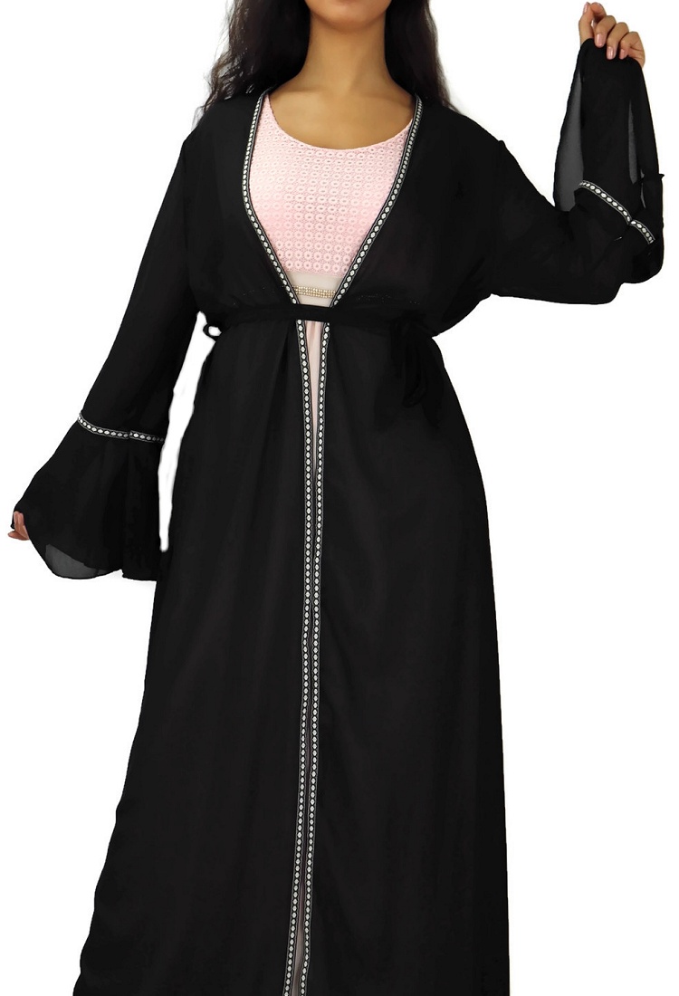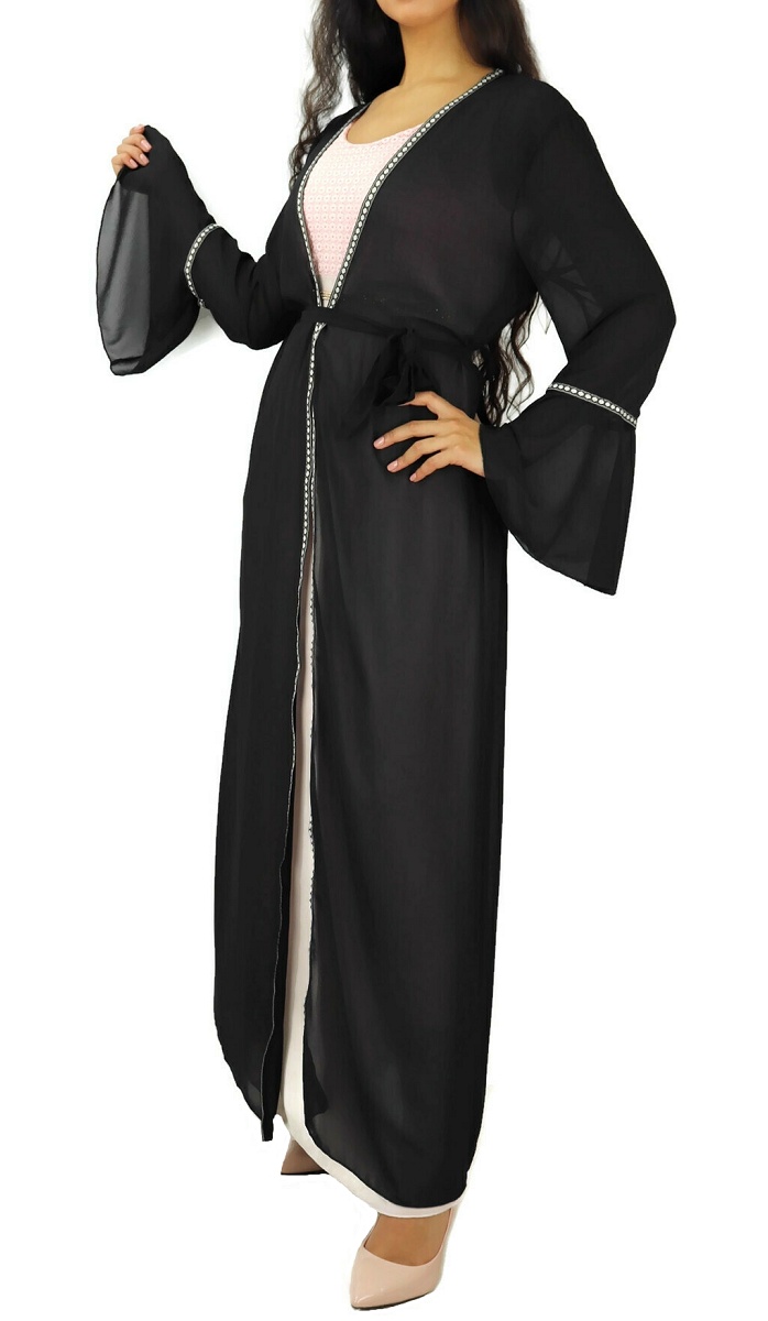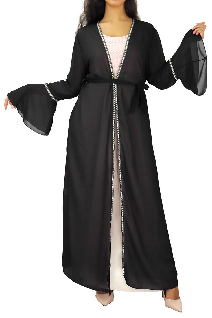 Kimono long avec broderies - Couleur Noir Vetement & Accessoire