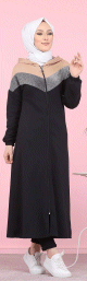 Robe zippée moderne à capuche avec haut argenté de type Sportswear idéal pour femme musulmane voilée - Couleur noir et Vison - REF. 33212 (29.90 €) - En Promotion à 24.90 €