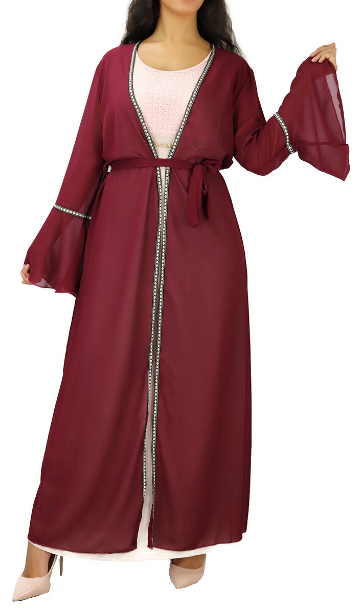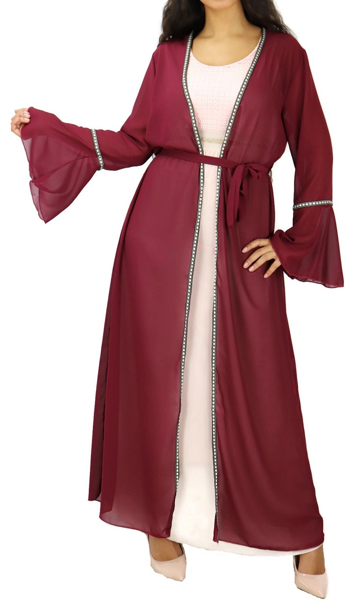 Robe Gilet pour femme (Tenue Hijab Chic Saison Automne-Hiver) - Couleur bordeaux - REF. 35669 (28.00 €)