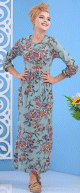 Robe fleurie en crêpe (Vetement pas cher pour femme voilée) - Couleur kaki - REF. 32309 (18.00 €) - En Promotion à 15.90 €