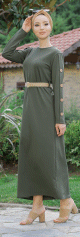Robe longue boutonnée à froufrou (Tenue pour femme voilée) - Couleur vert Kaki - REF. 33974 (29.00 €)