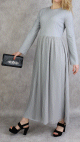 Robe de soirée longue plissée en tulle pour femme - Couleur gris clair - REF. 31276 (45.00 €)