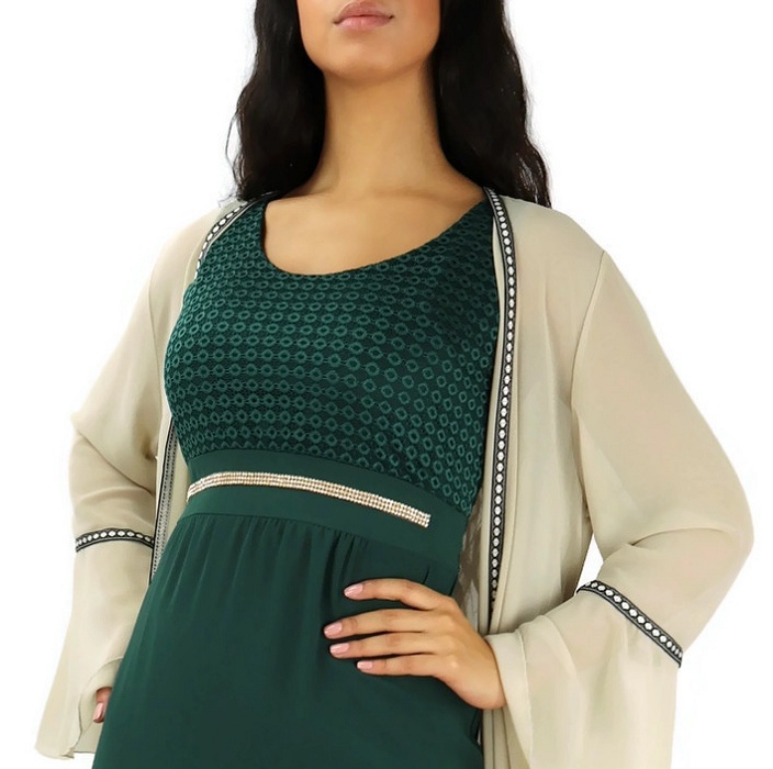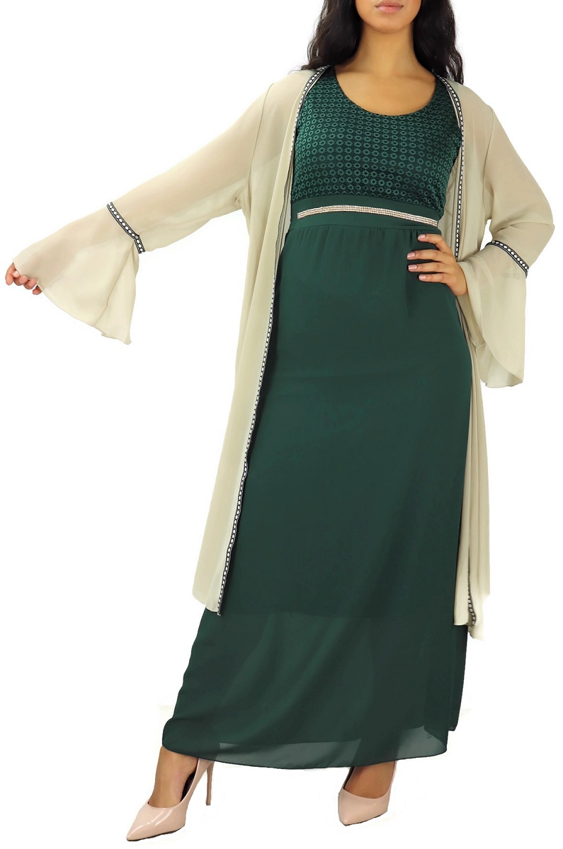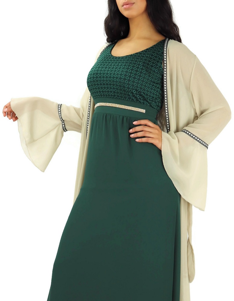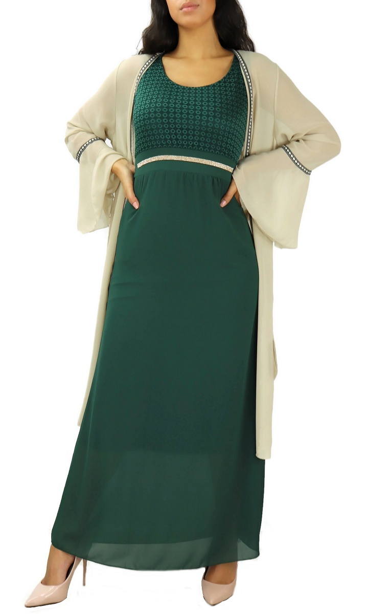 Robe longue (sans manches) à strass et dentelles - Couleur Vert émeraude Vetement & Accessoire
