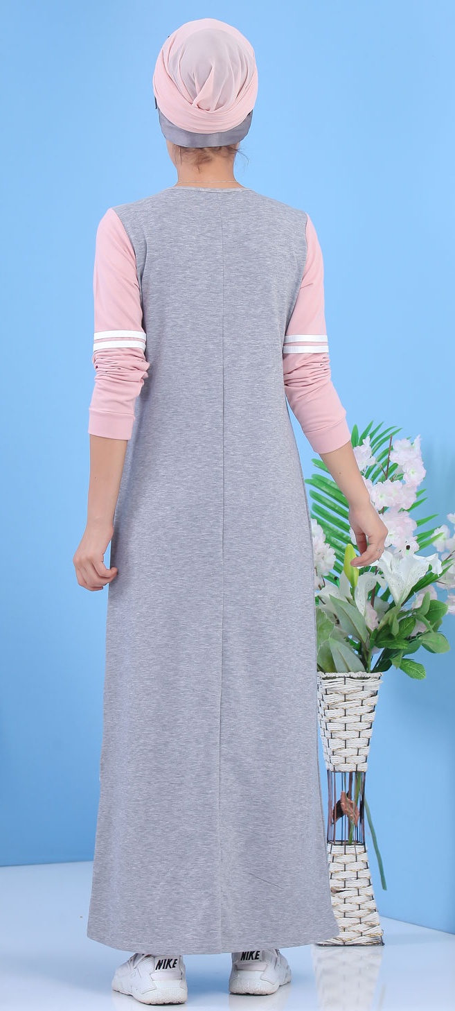 Robe longue sportswear de couleurs grise, rose et blanche (Vetement femme style moderne et sport)