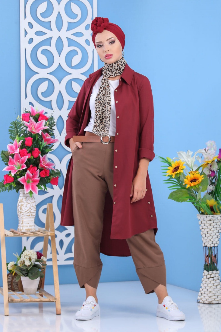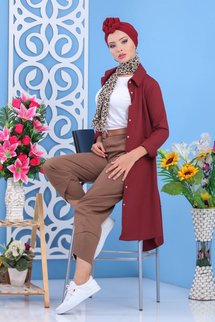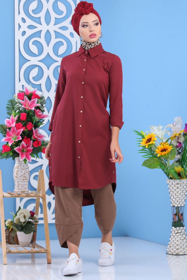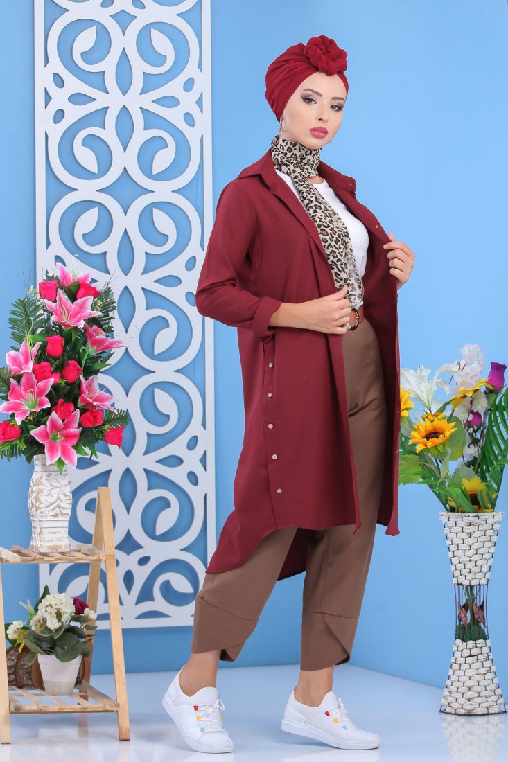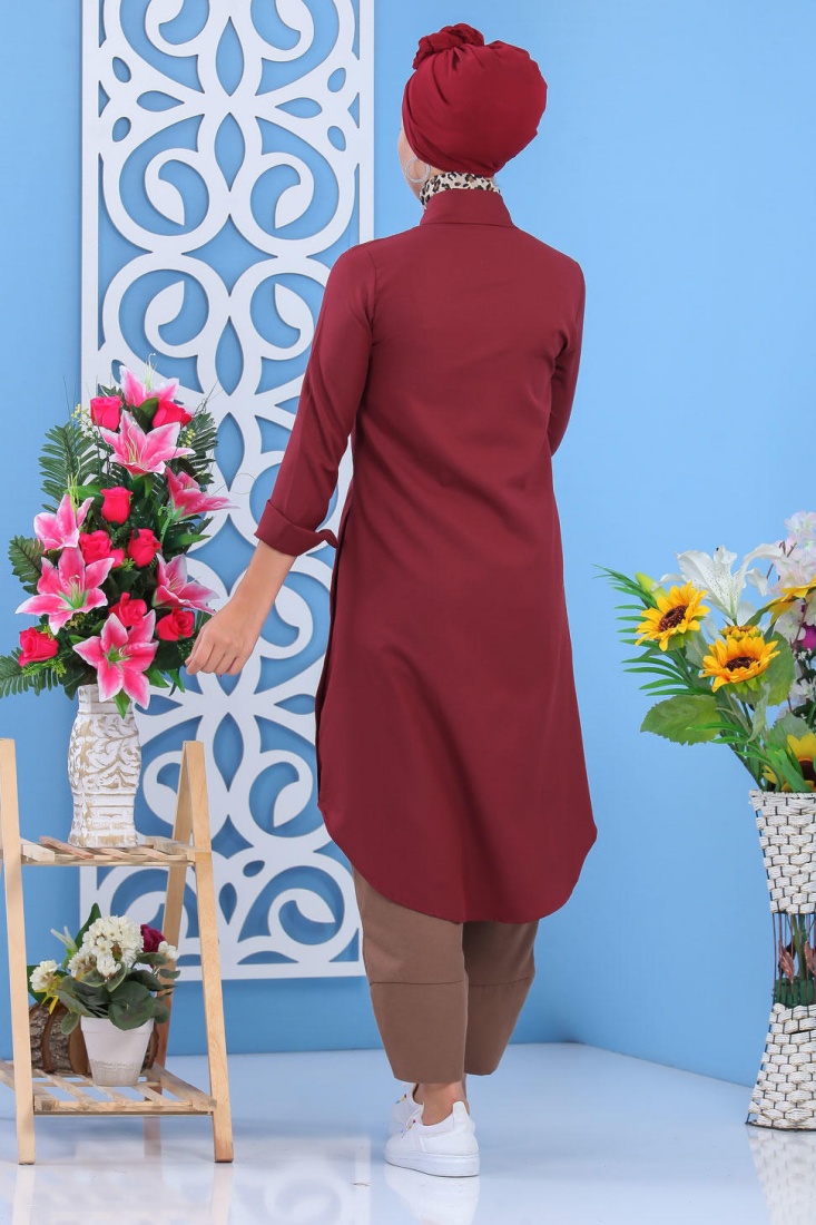 Tunique chemise longue pour femme - Couleur Bordeaux Vetement & Accessoire