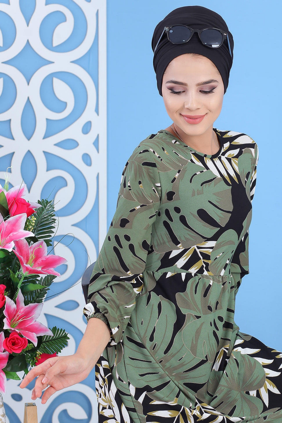 Robe longue, col rond, manches finition élastiques aux poignets, taille froncée élastique, tissu crêpe fluide. Cette robe à imprimés "tropical", très tendance, vous permettra de sortir du commun. Vous pourrez la porter aussi bien en journée qu'en soirée.