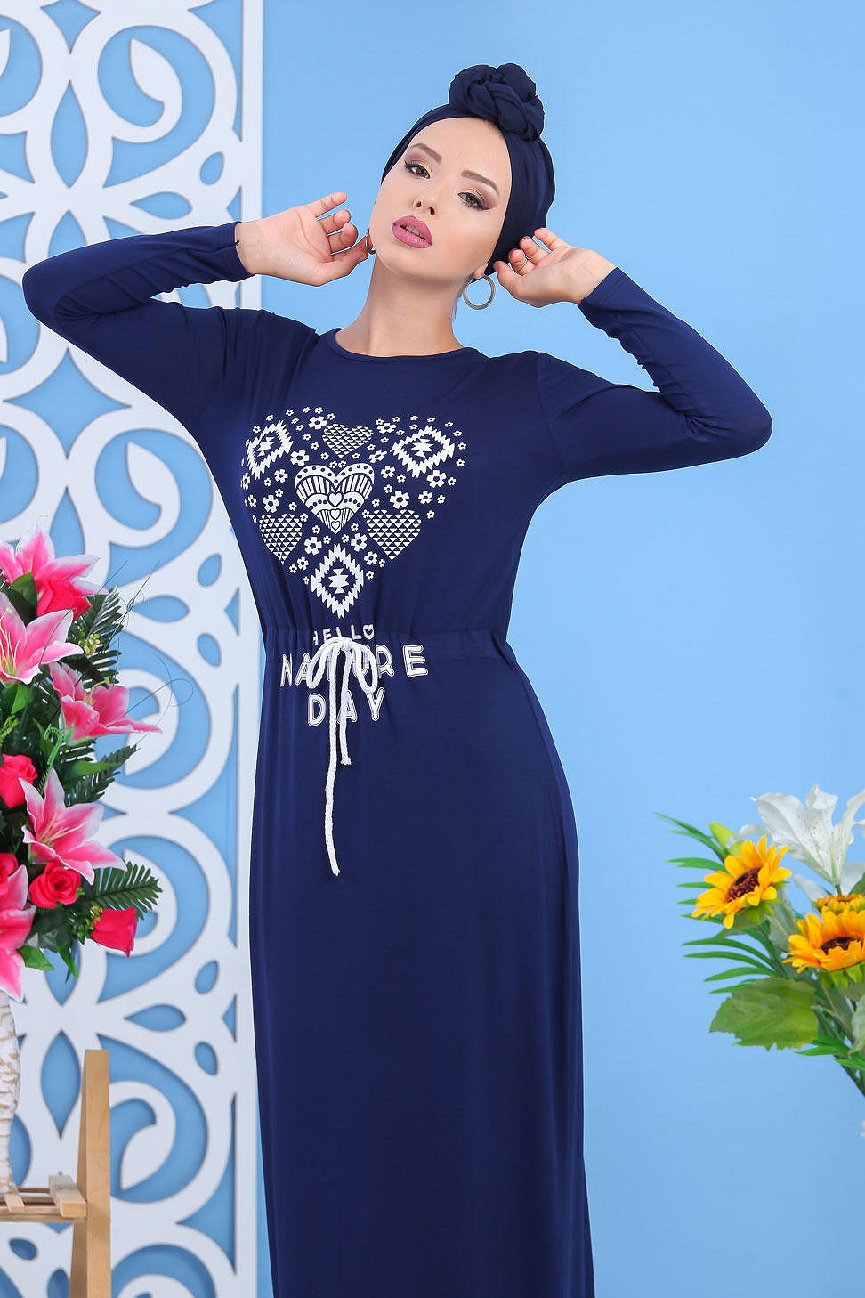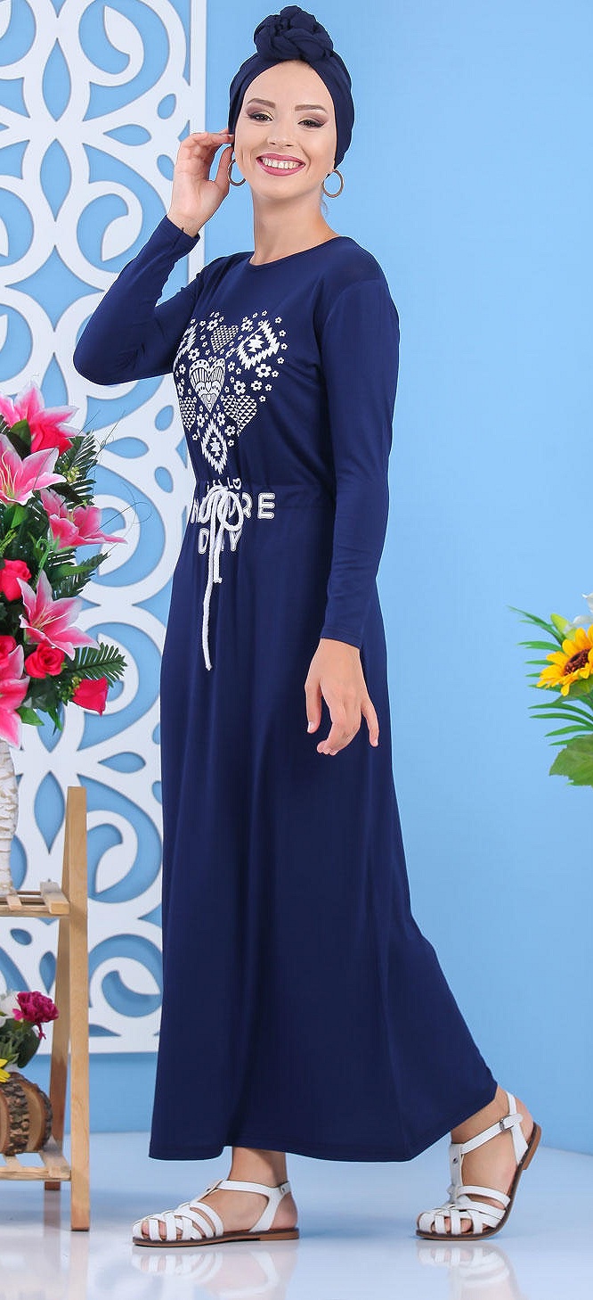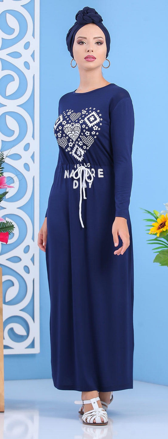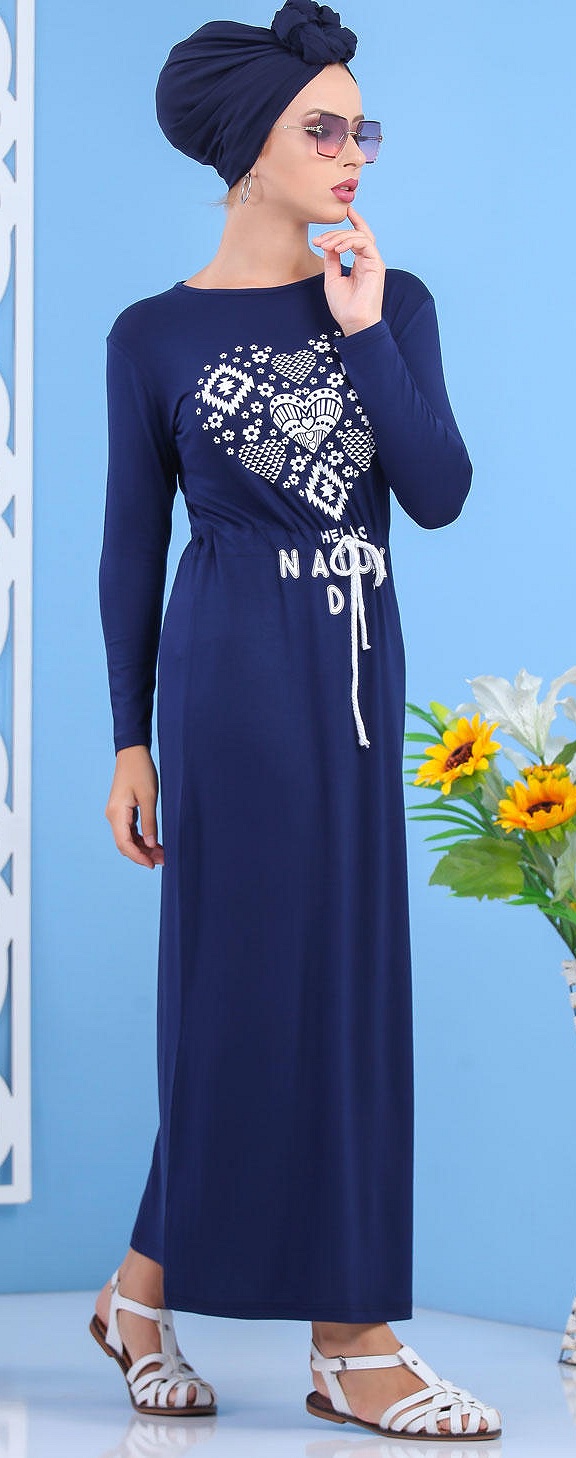 Robe longue, manches longues, lien de serrage au niveau de la taille. Avec sa matière fluide et sa coupe droite, elle est idéal pour avoir un look décontracté.