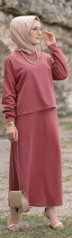 Ensemble deux pièces haut et jupe (Vetement mastour pour femme voilée) - Couleur rose - REF. 32839 (29.90 €) - En Promotion à 24.90 €