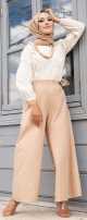 Ensemble Pantalon Palazzo ample et Blouse avec collier assorti pour femme - Couleur crème et beige - REF. 32868 (19.90 €)