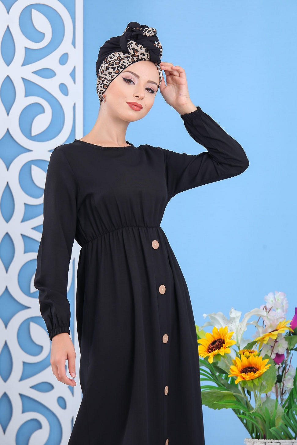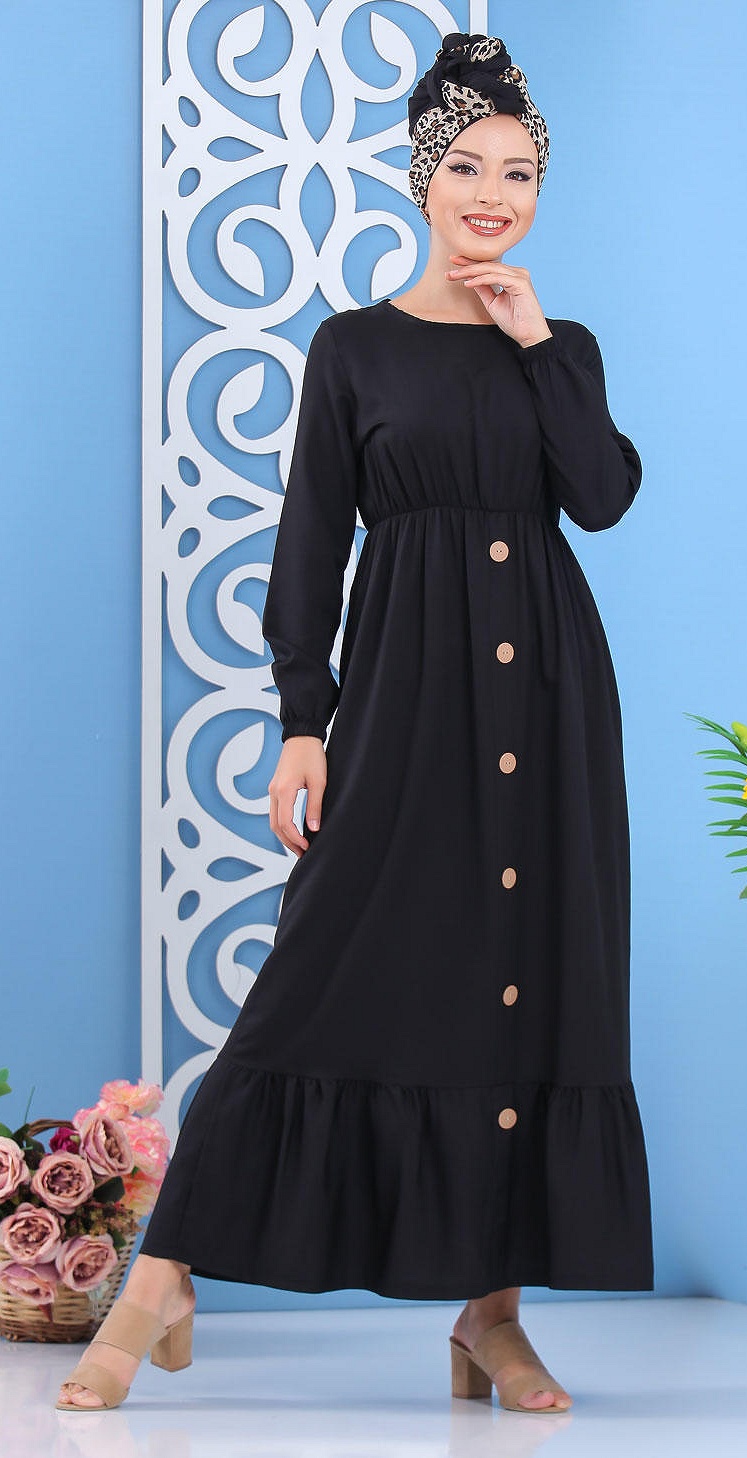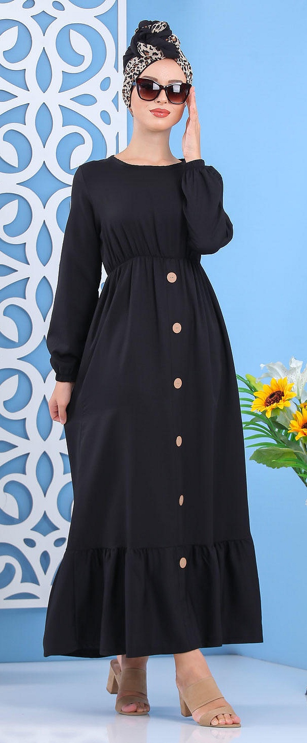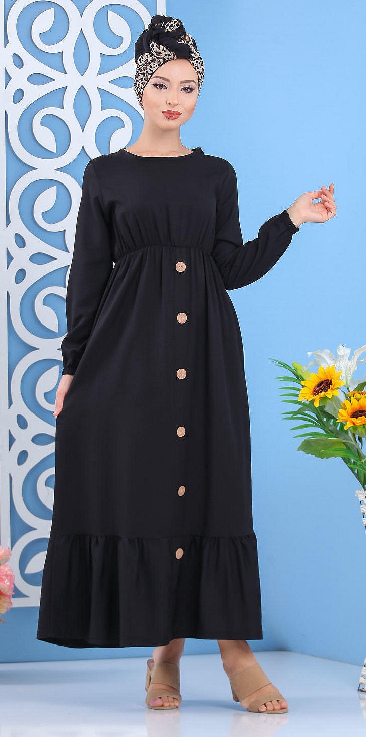 Robe décorée de boutons pour femme voilée - Vêtement islamique moderne - Couleur kaki - REF. 32294 (22.00 €) - En Promotion à 18.00 €