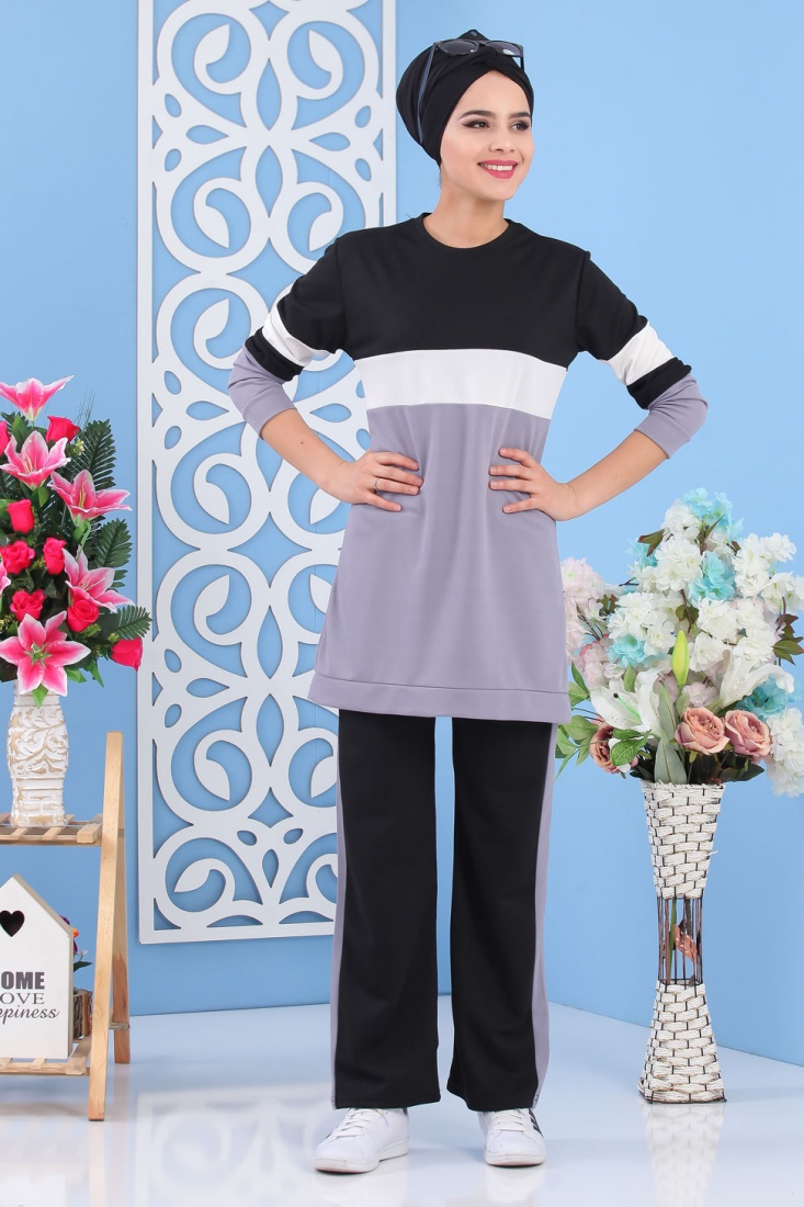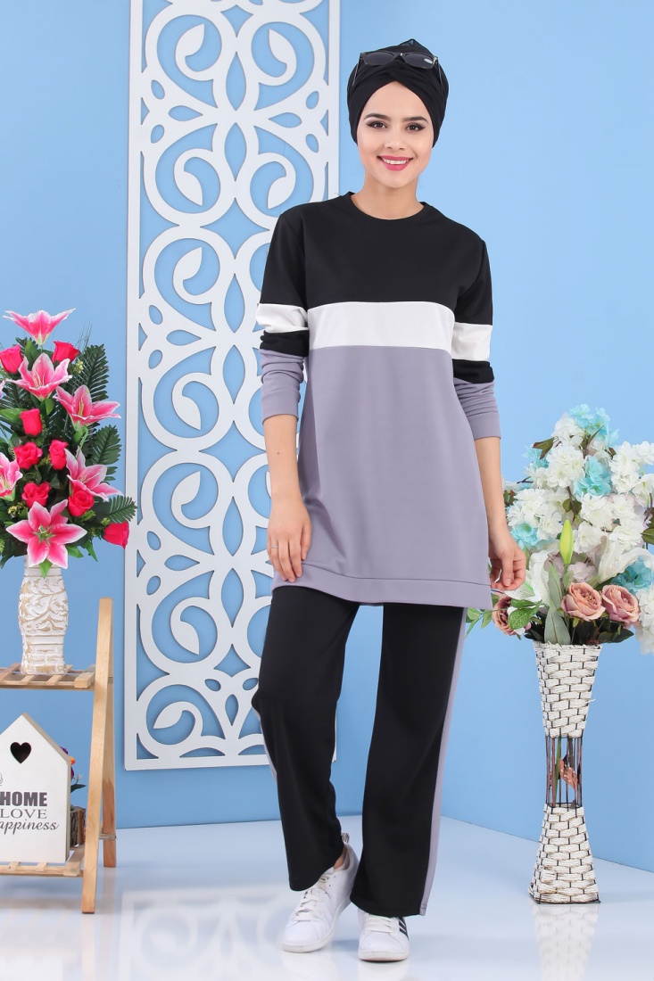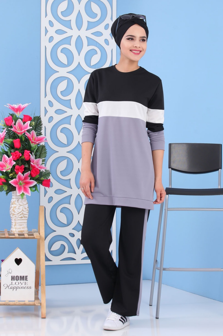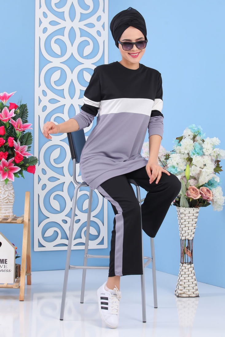 Ensemble moderne bicolore pour femme (Vêtement hijab style sport) - Couleur noir et gris - REF. 35921 (29.00 €)