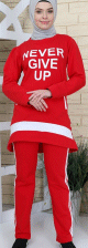 Survêtement femme "Never Guive Up" (Tenue Hijab sport) - Couleur rouge et blanc - REF. 31640 (29.00 €)