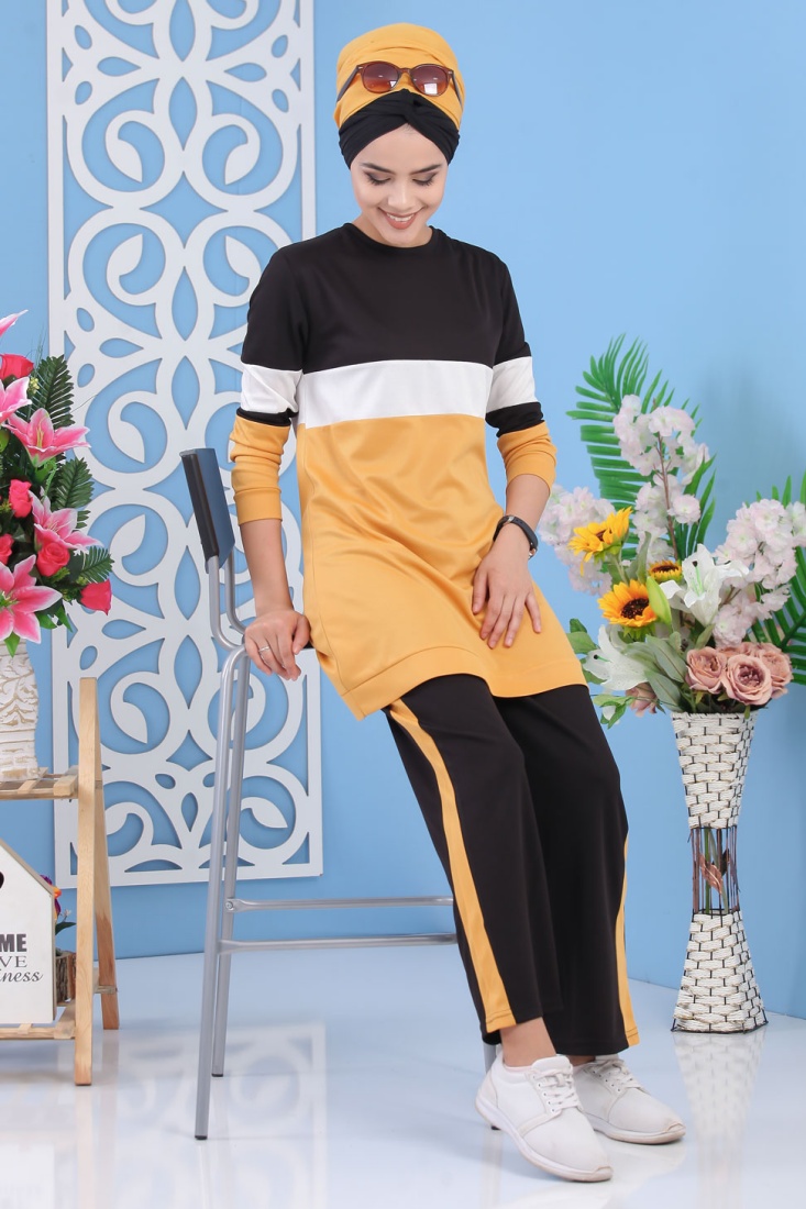 Ensemble décontracté pour femme (Hijab moderne et sport) - Couleur noir et blanc - REF. 36259 (28.00 €)